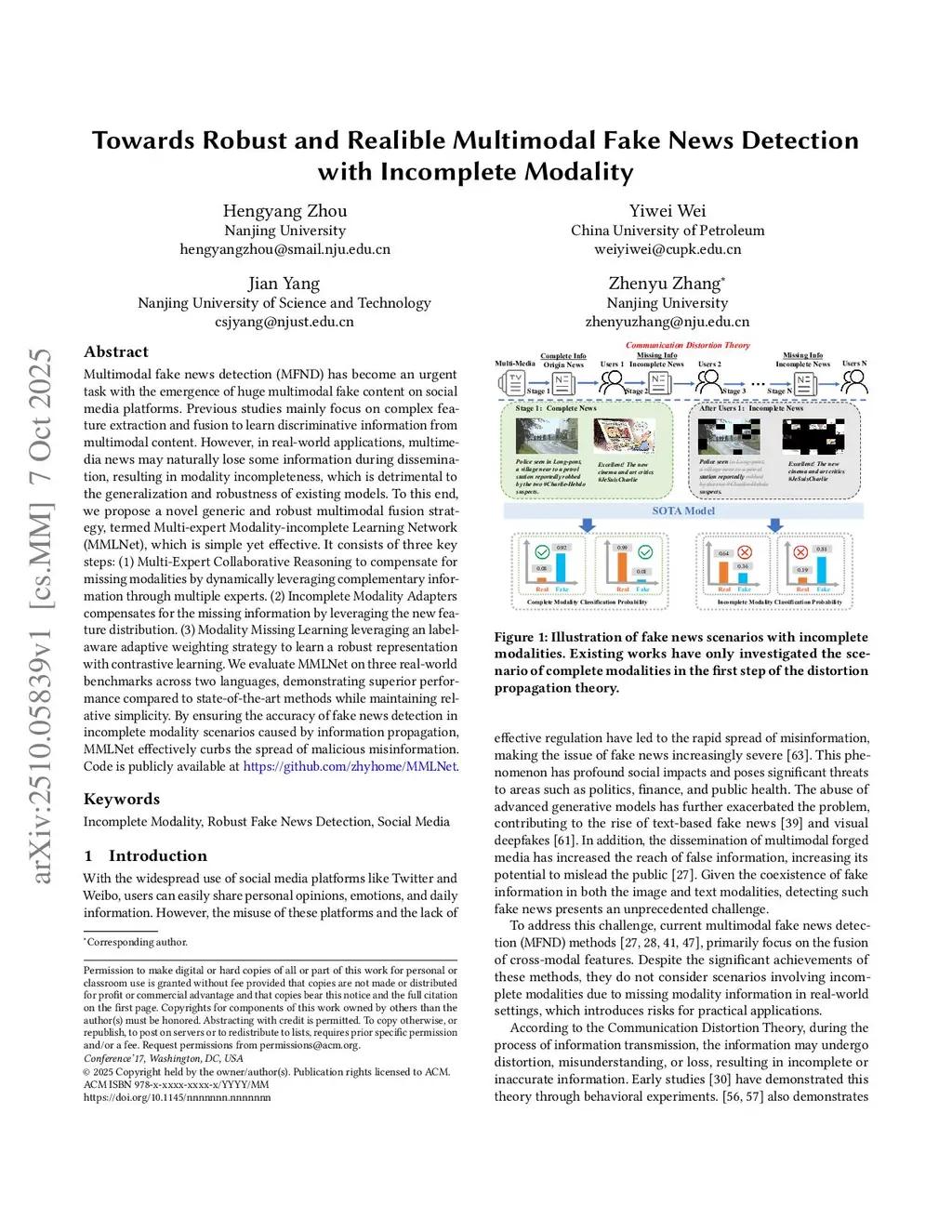 Towards Robust and Realible Multimodal Misinformation Recognition with Incomplete Modality