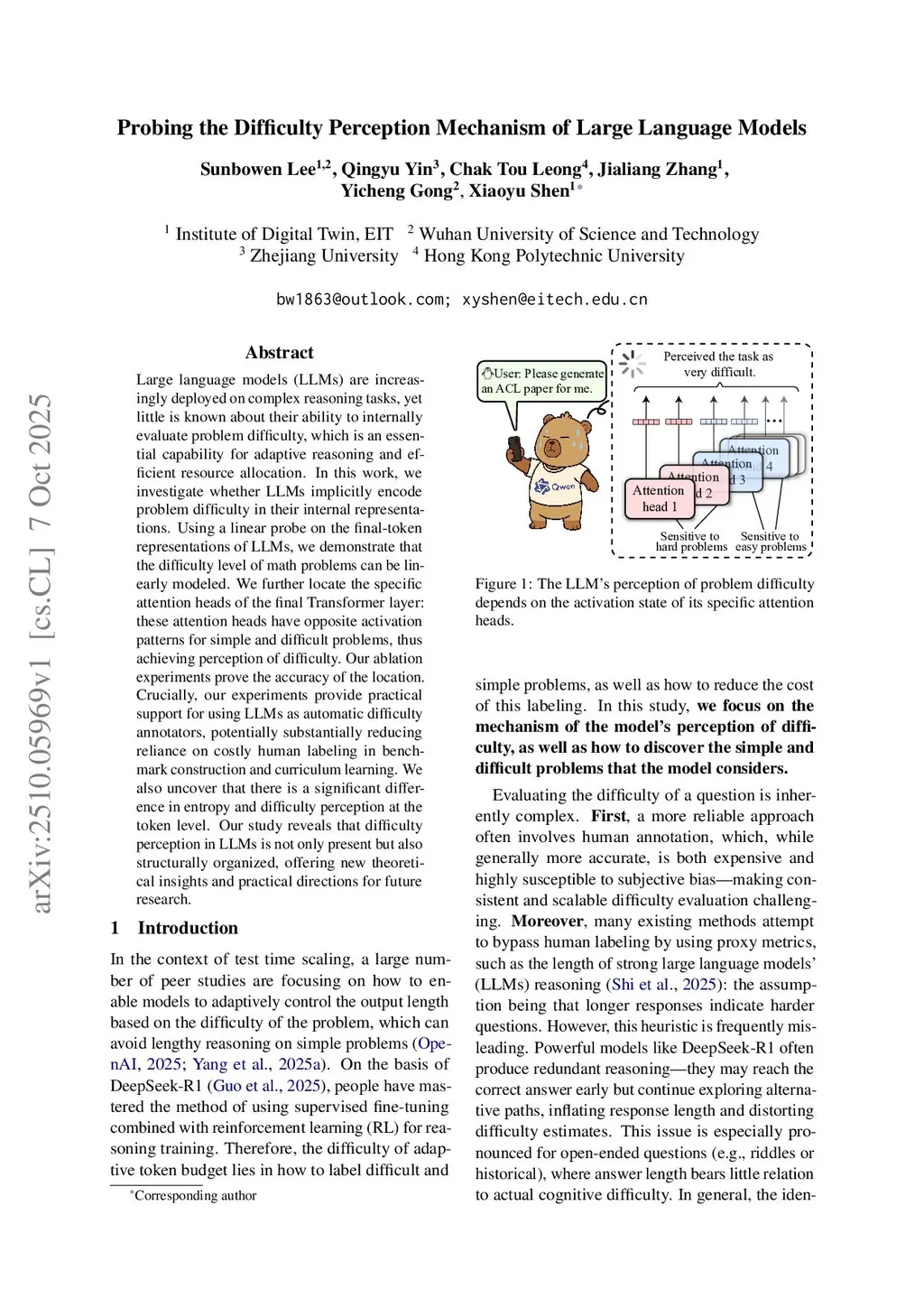 Probing the Difficulty Perception Mechanism of Large Language Models