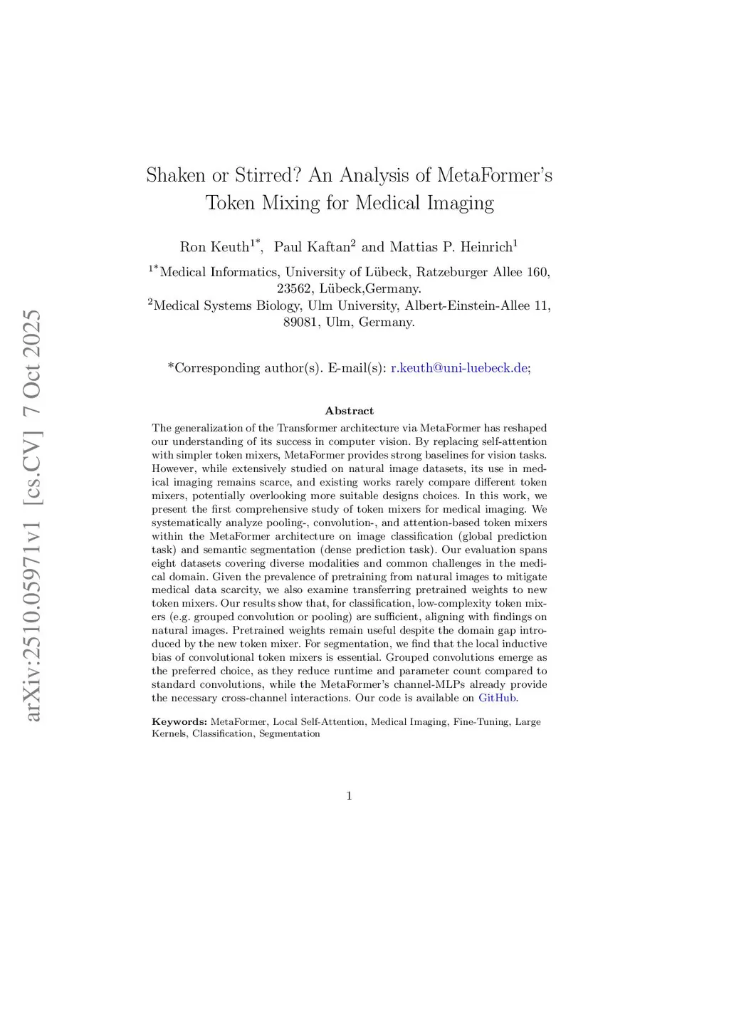 Shaken or Stirred? An Analysis of MetaFormer's Token Mixing for Medical Imaging