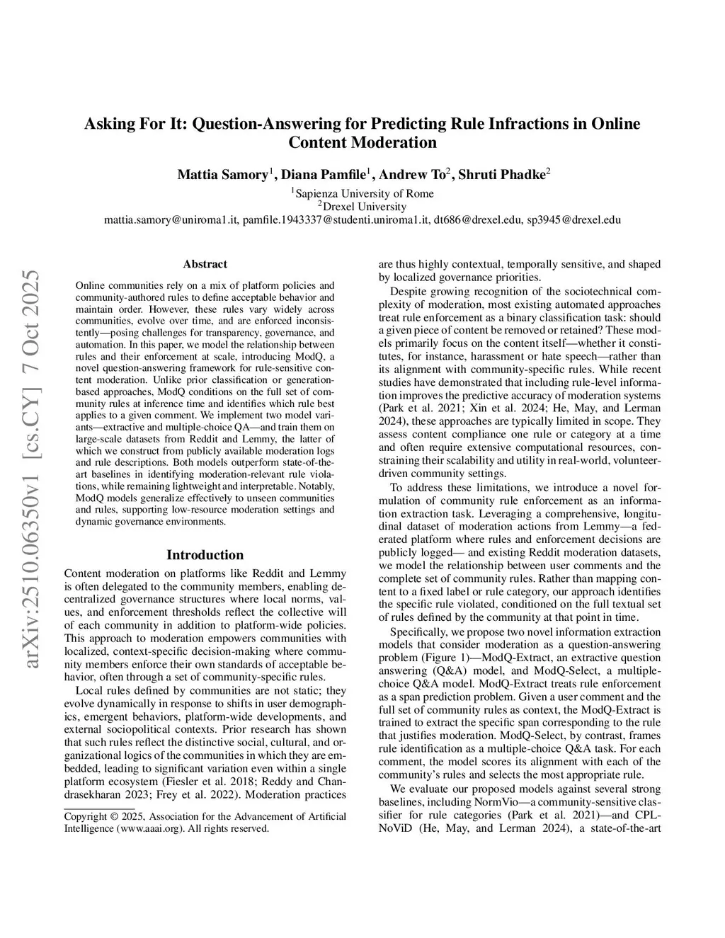 Asking For It: Question-Answering for Predicting Rule Infractions in Online Content Moderation