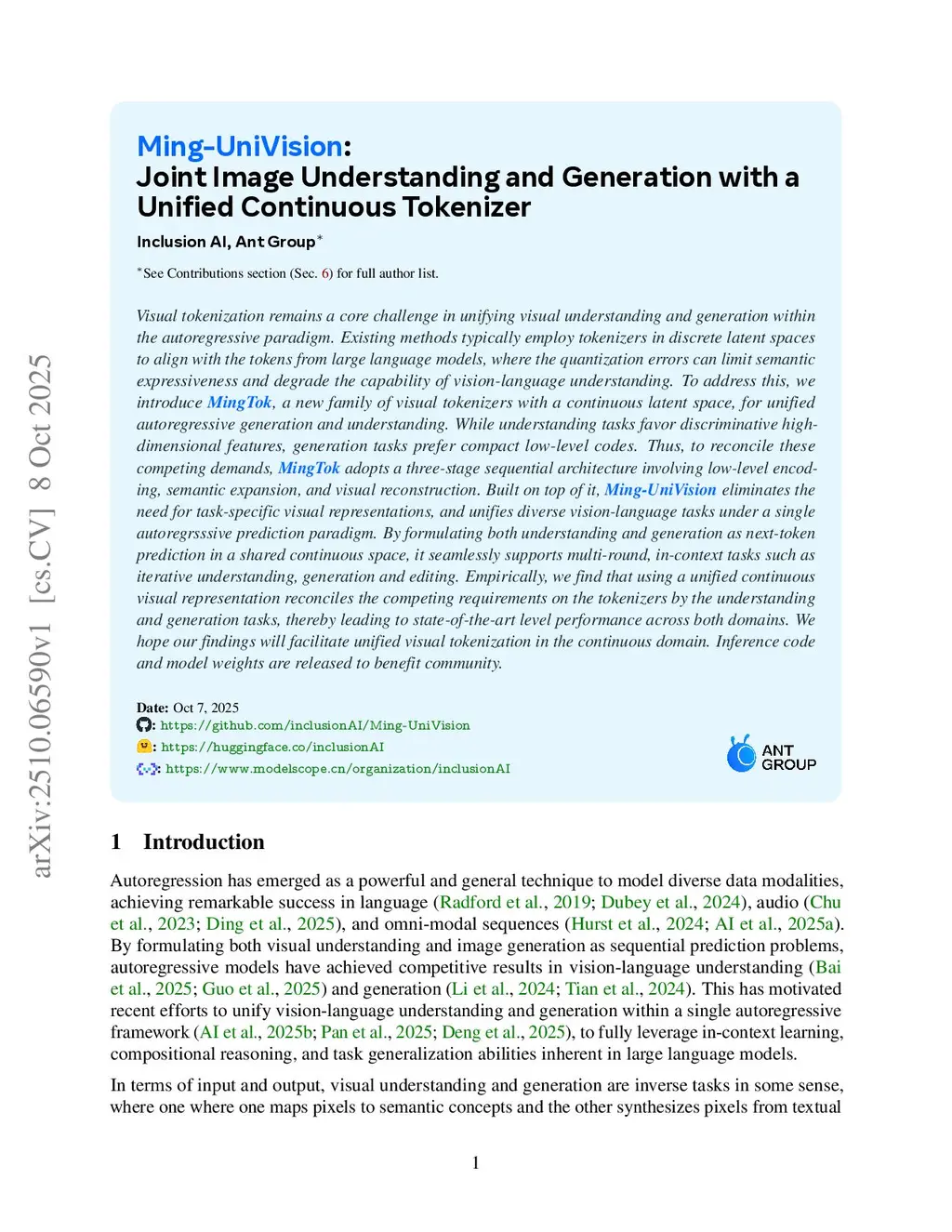 Ming-UniVision: Joint Image Understanding and Generation with a Unified Continuous Tokenizer
