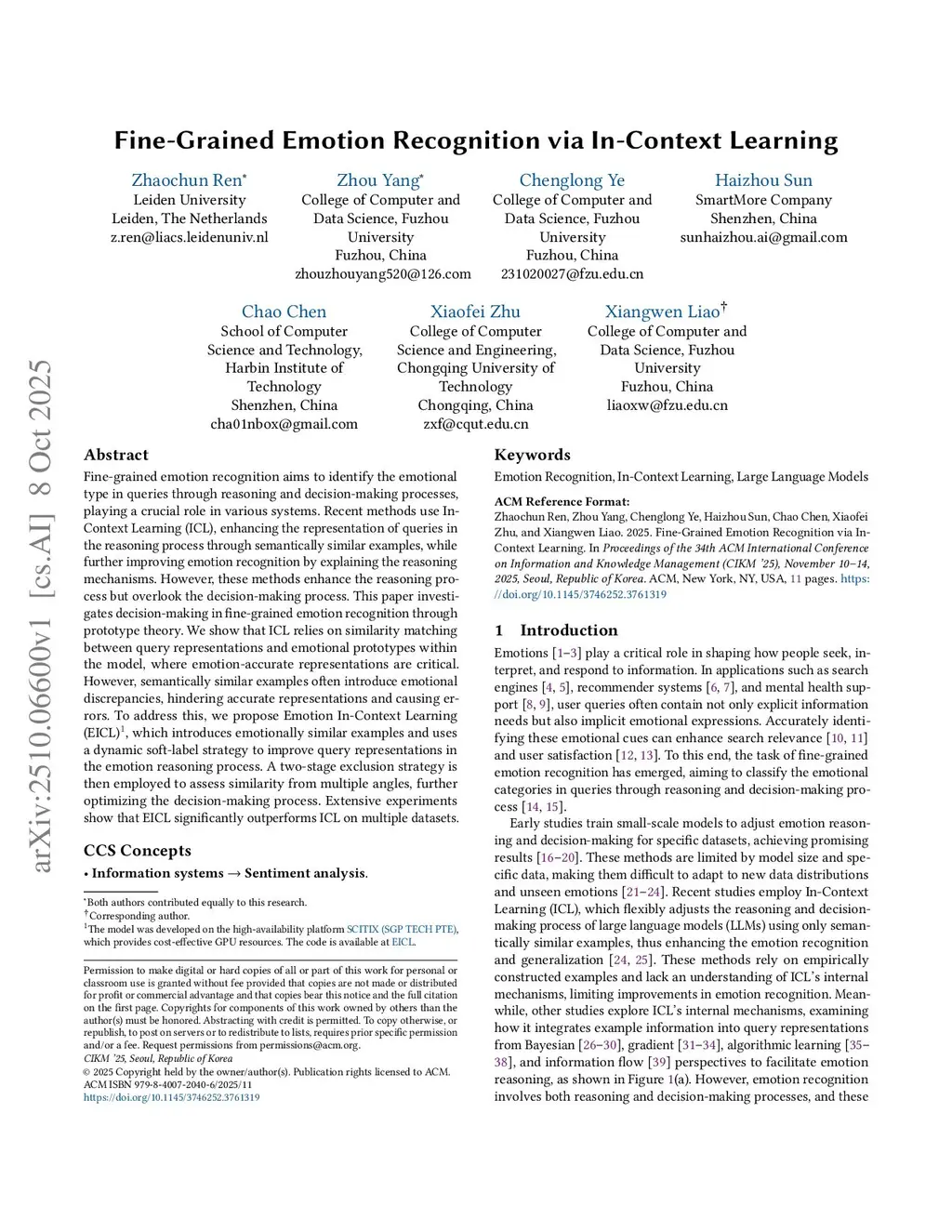 Fine-Grained Emotion Recognition via In-Context Learning