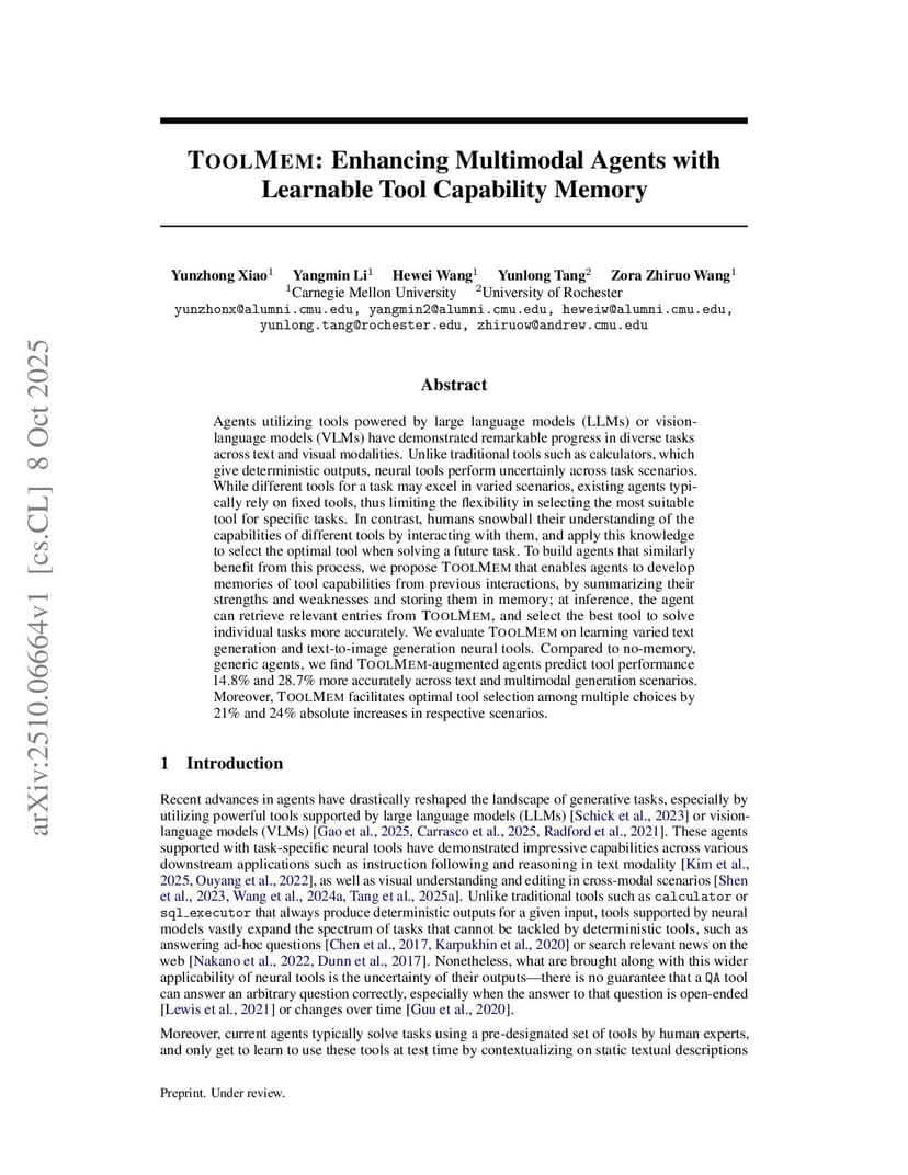 ToolMem: Enhancing Multimodal Agents with Learnable Tool Capability Memory
