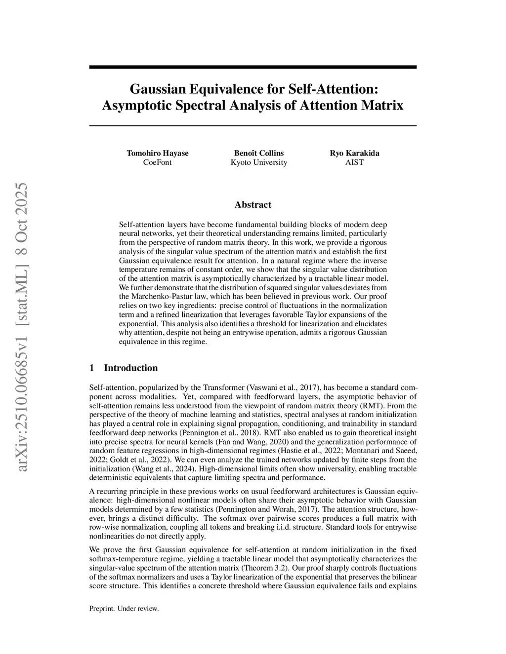 Gaussian Equivalence for Self-Attention: Asymptotic Spectral Analysis of Attention Matrix