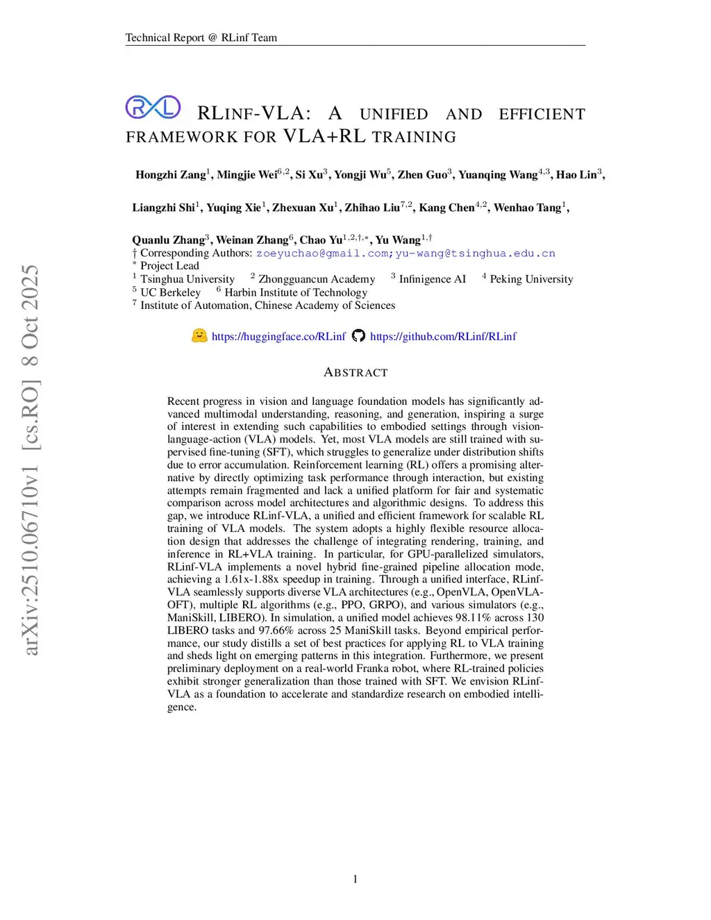 RLinf-VLA: A Unified and Efficient Framework for VLA+RL Training