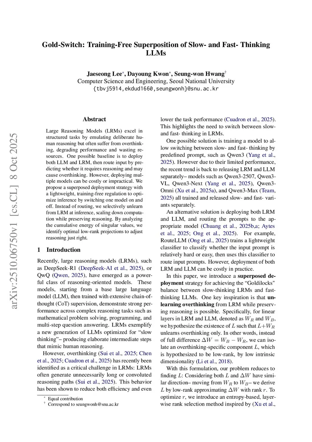 Gold-Switch: Training-Free Superposition of Slow- and Fast- Thinking LLMs