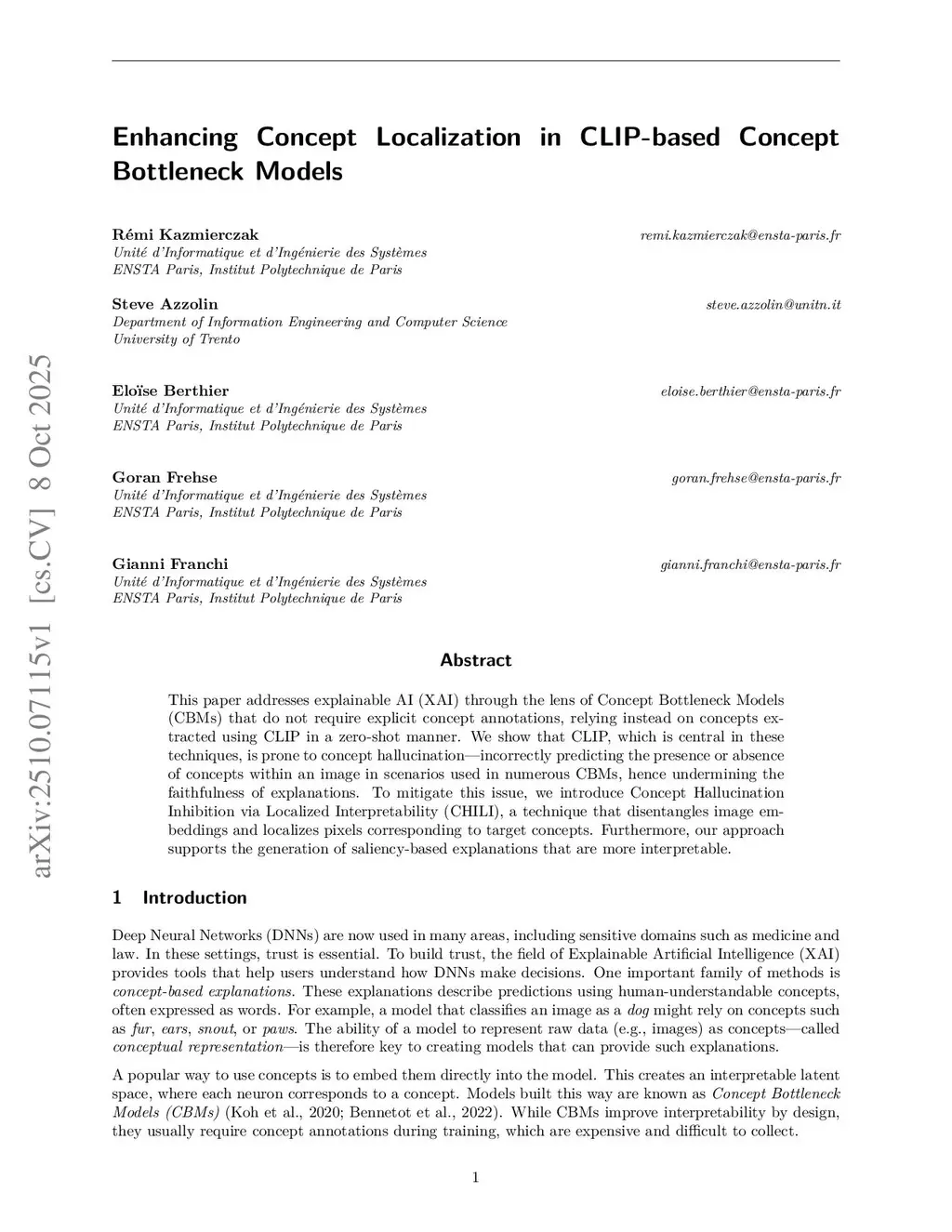 This paper addresses explainable AI (XAI) through the lens of Concept Bottleneck Models (CBMs) that do not require explicit concept annotations, relying instead on concepts extracted using CLIP in a zero-shot manner. We show that CLIP, which is central in these techniques, is prone to concept hallucination, incorrectly predicting the presence or absence of concepts within an image in scenarios used in numerous CBMs, hence undermining the faithfulness of explanations. To mitigate this issue, we introduce Concept Hallucination Inhibition via Localized Interpretability (CHILI), a technique that disentangles image embeddings and localizes pixels corresponding to target concepts. Furthermore, our approach supports the generation of saliency-based explanations that are more interpretable.
