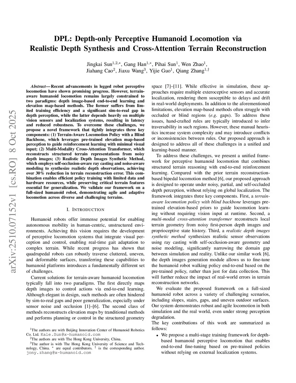 DPL: Depth-only Perceptive Humanoid Locomotion via Realistic Depth Synthesis and Cross-Attention Terrain Reconstruction