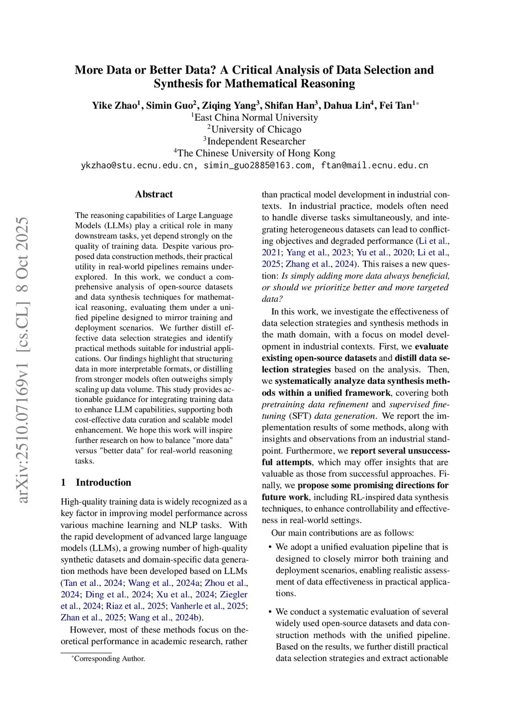 The reasoning capabilities of Large Language Models (LLMs) play a critical role in many downstream tasks, yet depend strongly on the quality of training data. Despite various proposed data construction methods, their practical utility in real-world pipelines remains underexplored. In this work, we conduct a comprehensive analysis of open-source datasets and data synthesis techniques for mathematical reasoning, evaluating them under a unified pipeline designed to mirror training and deployment scenarios. We further distill effective data selection strategies and identify practical methods suitable for industrial applications. Our findings highlight that structuring data in more interpretable formats, or distilling from stronger models often outweighs simply scaling up data volume. This study provides actionable guidance for integrating training data to enhance LLM capabilities, supporting both cost-effective data curation and scalable model enhancement. We hope this work will inspire further research on how to balance "more data" versus "better data" for real-world reasoning tasks.