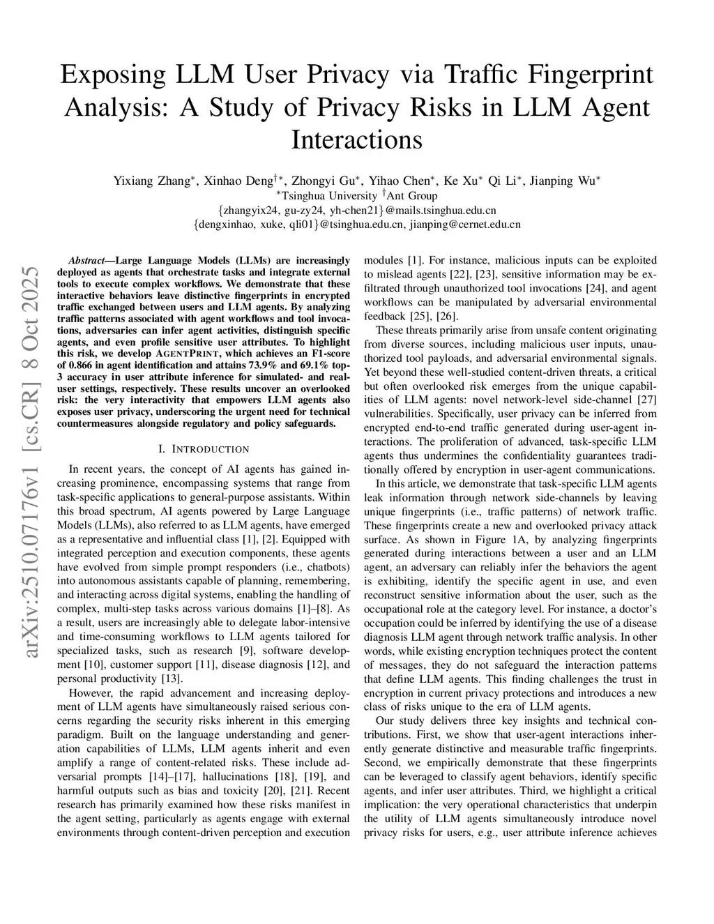 Exposing LLM User Privacy via Traffic Fingerprint Analysis: A Study of Privacy Risks in LLM Agent Interactions