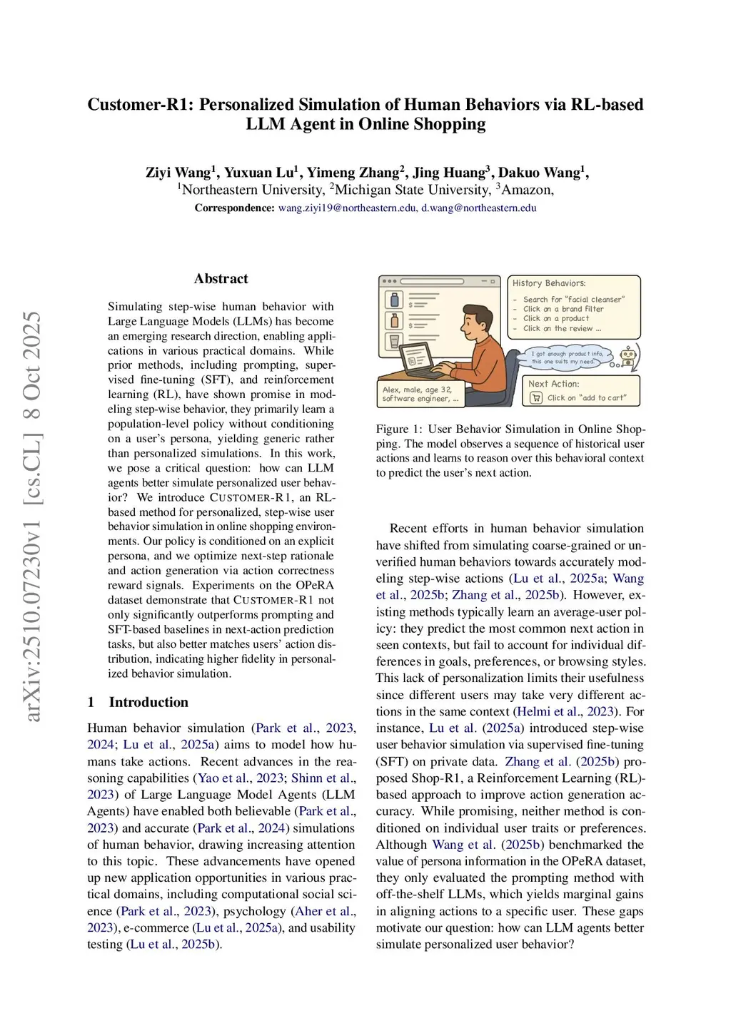 Customer-R1: Personalized Simulation of Human Behaviors via RL-based LLM Agent in Online Shopping