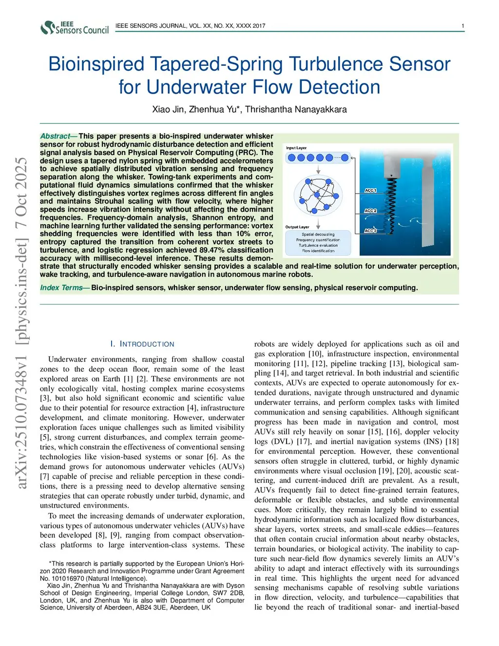 Bioinspired Tapered-Spring Turbulence Sensor for Underwater Flow Detection