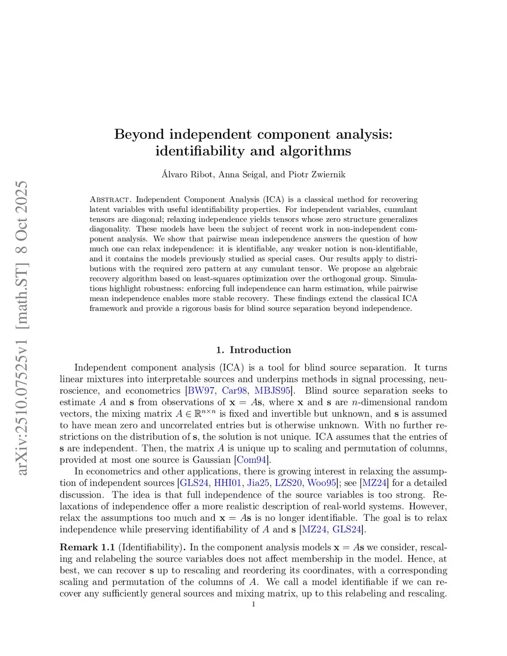 Independent Component Analysis (ICA) is a classical method for recovering latent variables with useful identifiability properties. For independent variables, cumulant tensors are diagonal; relaxing independence yields tensors whose zero structure generalizes diagonality. These models have been the subject of recent work in non-independent component analysis. We show that pairwise mean independence answers the question of how much one can relax independence: it is identifiable, any weaker notion is non-identifiable, and it contains the models previously studied as special cases. Our results apply to distributions with the required zero pattern at any cumulant tensor. We propose an algebraic recovery algorithm based on least-squares optimization over the orthogonal group. Simulations highlight robustness: enforcing full independence can harm estimation, while pairwise mean independence enables more stable recovery. These findings extend the classical ICA framework and provide a rigorous basis for blind source separation beyond independence.