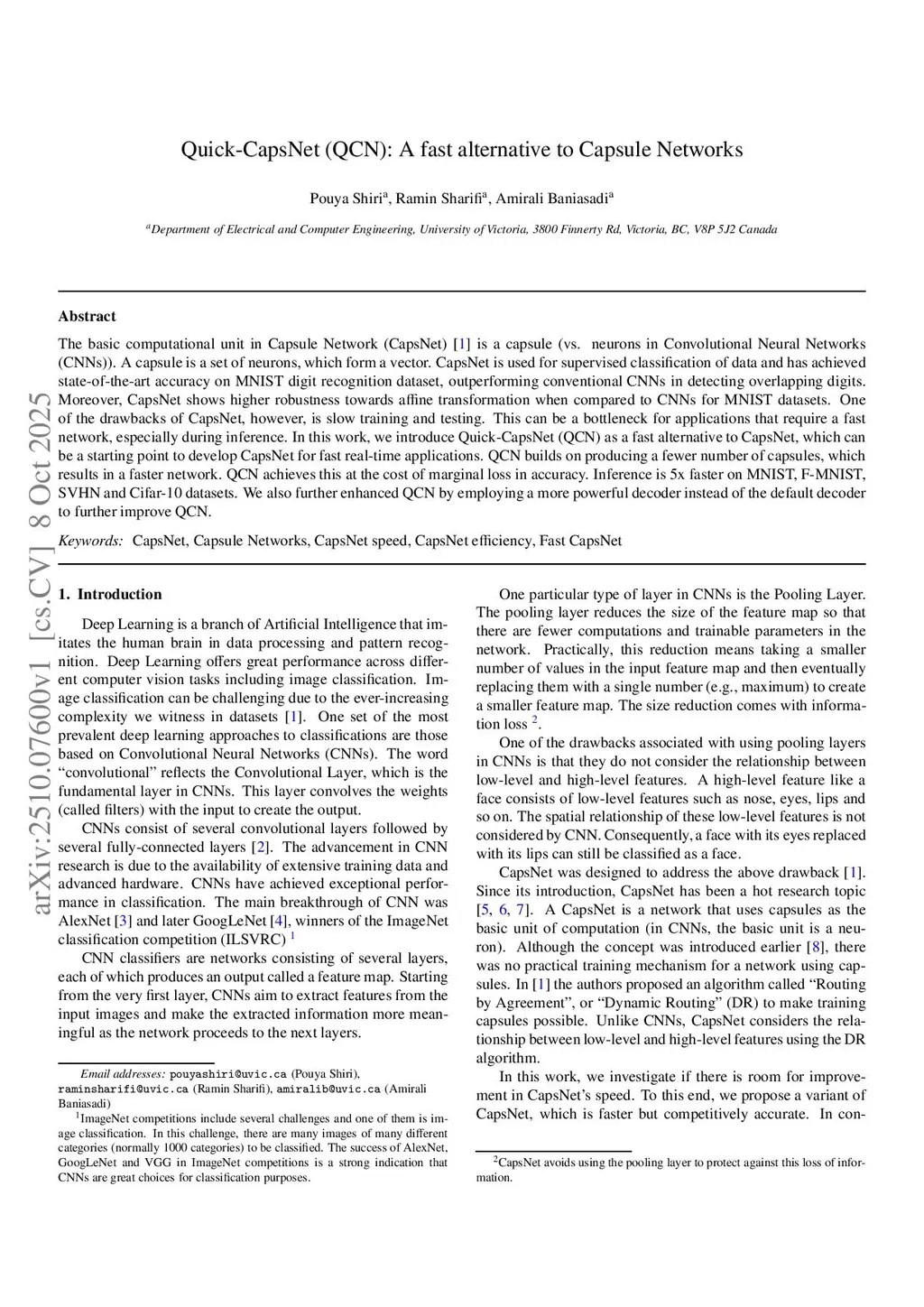 Quick-CapsNet (QCN): A fast alternative to Capsule Networks