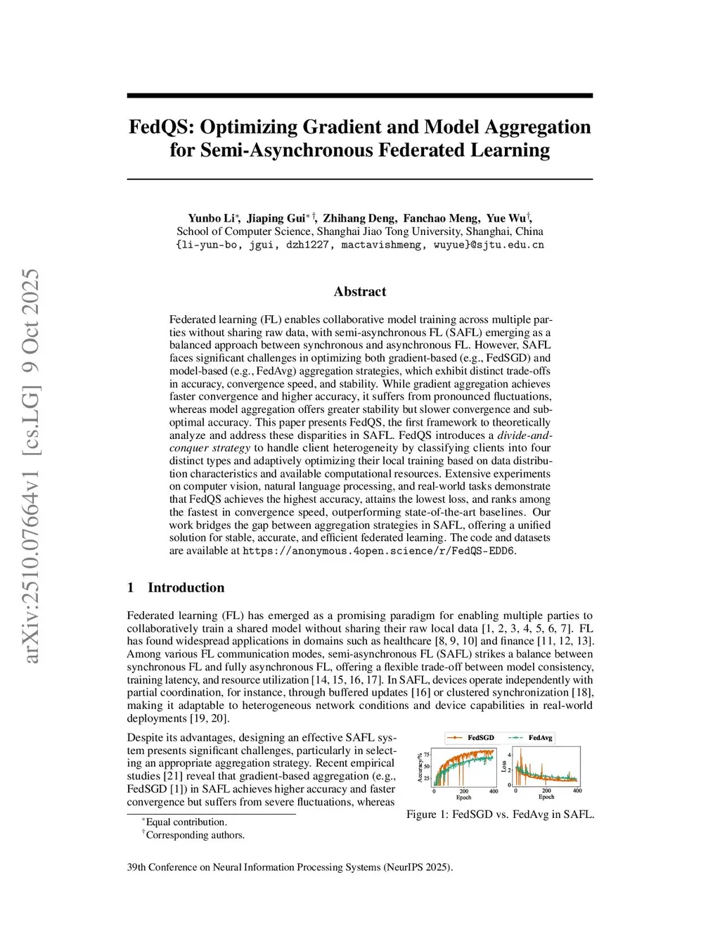 Federated learning (FL) enables collaborative model training across multiple parties without sharing raw data, with semi-asynchronous FL (SAFL) emerging as a balanced approach between synchronous and asynchronous FL. However, SAFL faces significant challenges in optimizing both gradient-based (e.g., FedSGD) and model-based (e.g., FedAvg) aggregation strategies, which exhibit distinct trade-offs in accuracy, convergence speed, and stability. While gradient aggregation achieves faster convergence and higher accuracy, it suffers from pronounced fluctuations, whereas model aggregation offers greater stability but slower convergence and suboptimal accuracy. This paper presents FedQS, the first framework to theoretically analyze and address these disparities in SAFL. FedQS introduces a divide-and-conquer strategy to handle client heterogeneity by classifying clients into four distinct types and adaptively optimizing their local training based on data distribution characteristics and available computational resources. Extensive experiments on computer vision, natural language processing, and real-world tasks demonstrate that FedQS achieves the highest accuracy, attains the lowest loss, and ranks among the fastest in convergence speed, outperforming state-of-the-art baselines. Our work bridges the gap between aggregation strategies in SAFL, offering a unified solution for stable, accurate, and efficient federated learning. The code and datasets are available atthis https URL.