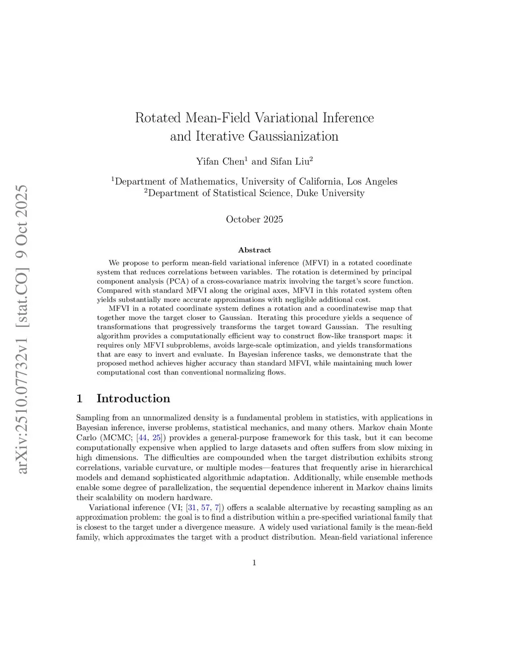 We propose to perform mean-field variational inference (MFVI) in a rotated coordinate system that reduces correlations between variables. The rotation is determined by principal component analysis (PCA) of a cross-covariance matrix involving the target's score function. Compared with standard MFVI along the original axes, MFVI in this rotated system often yields substantially more accurate approximations with negligible additional cost.MFVI in a rotated coordinate system defines a rotation and a coordinatewise map that together move the target closer to Gaussian. Iterating this procedure yields a sequence of transformations that progressively transforms the target toward Gaussian. The resulting algorithm provides a computationally efficient way to construct flow-like transport maps: it requires only MFVI subproblems, avoids large-scale optimization, and yields transformations that are easy to invert and evaluate. In Bayesian inference tasks, we demonstrate that the proposed method achieves higher accuracy than standard MFVI, while maintaining much lower computational cost than conventional normalizing flows.