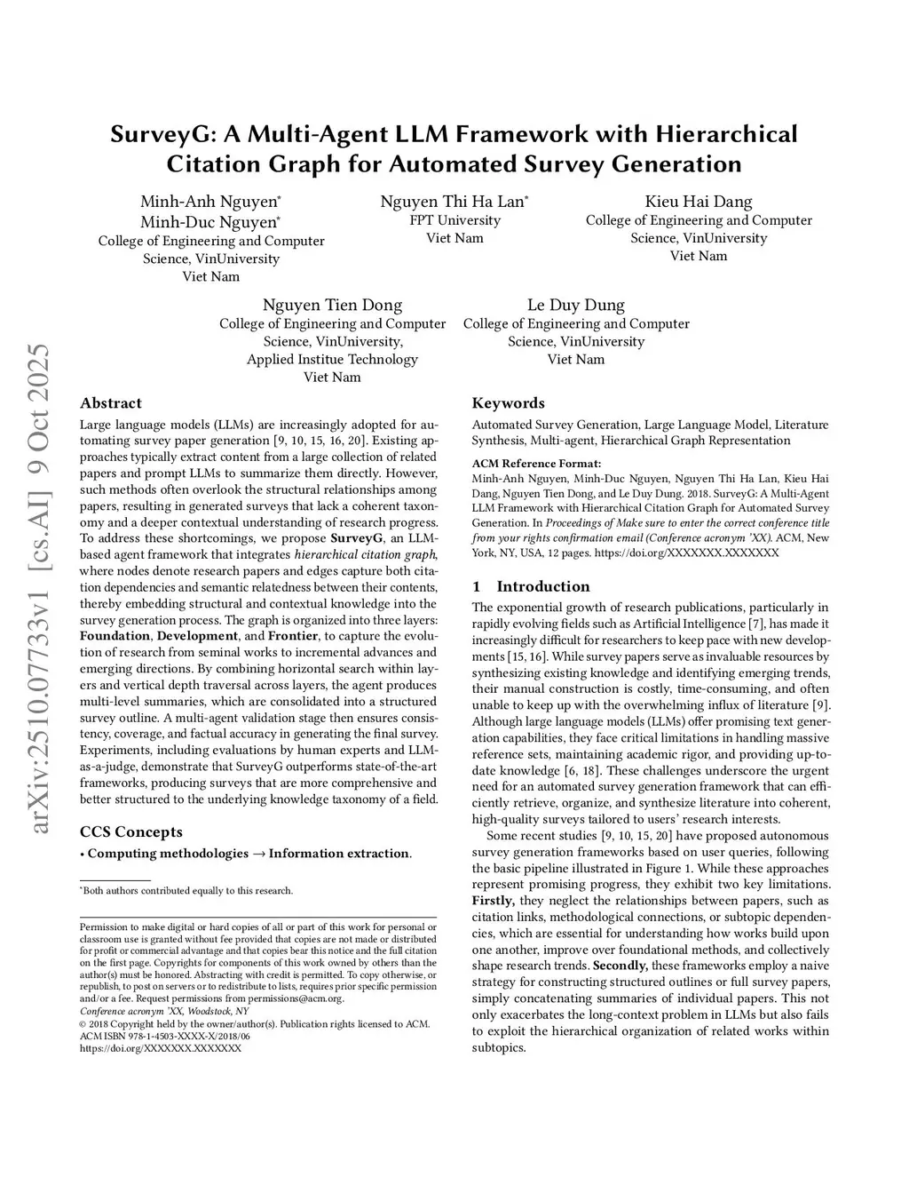 SurveyG: A Multi-Agent LLM Framework with Hierarchical Citation Graph for Automated Survey Generation