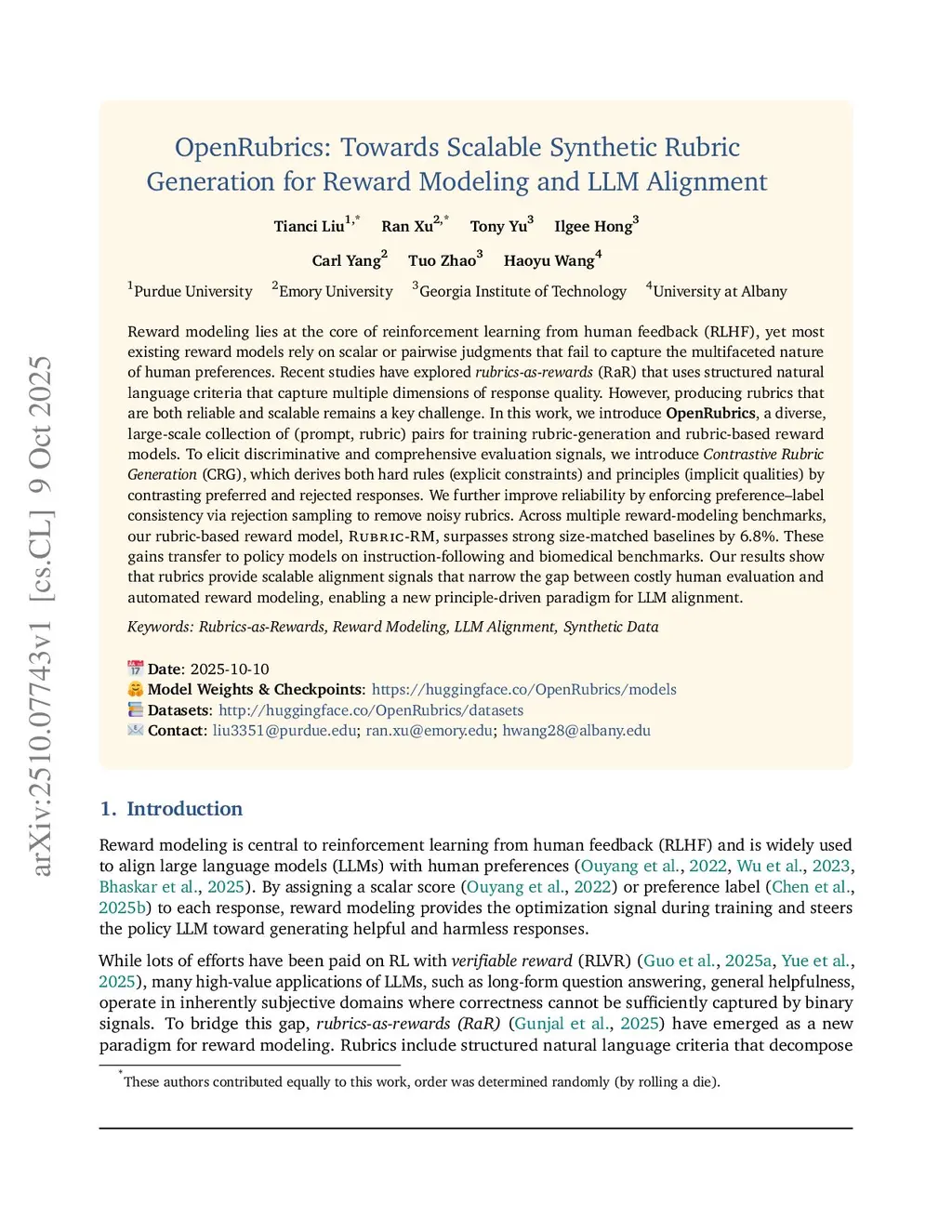 OpenRubrics: Towards Scalable Synthetic Rubric Generation for Reward Modeling and LLM Alignment