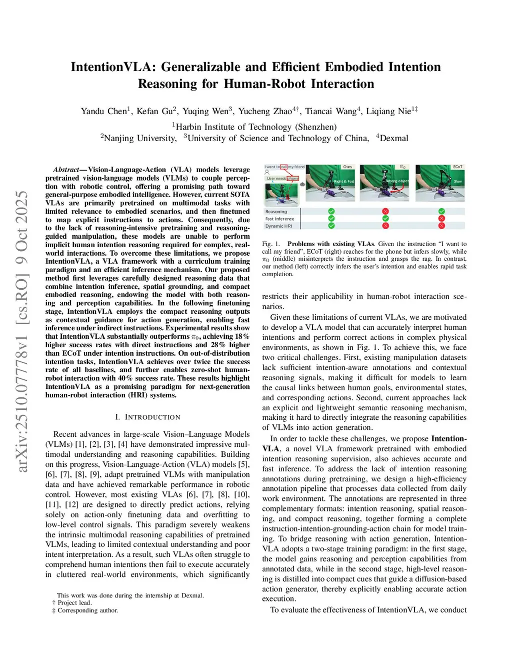 IntentionVLA: Generalizable and Efficient Embodied Intention Reasoning for Human-Robot Interaction