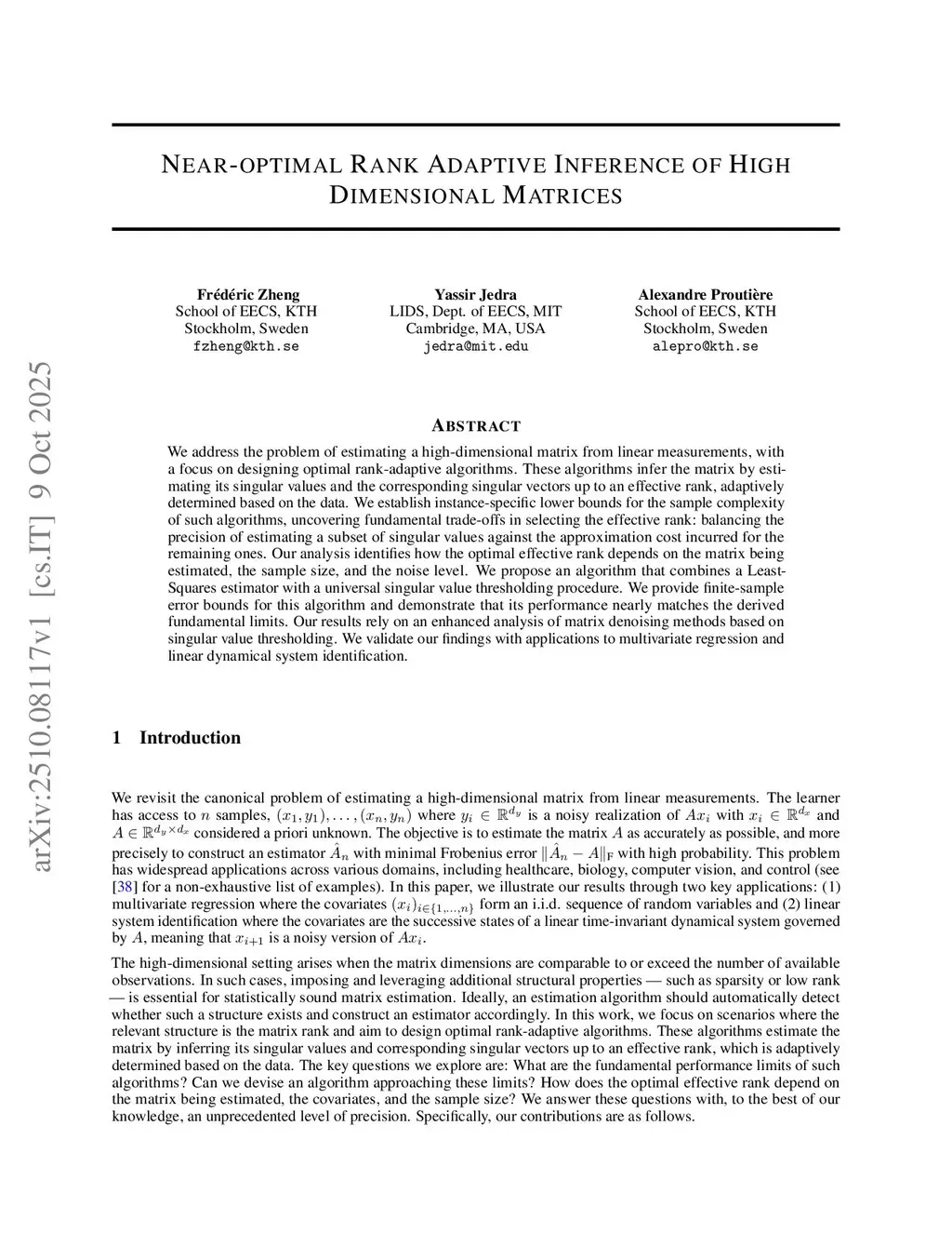 Near-optimal Rank Adaptive Inference of High Dimensional Matrices