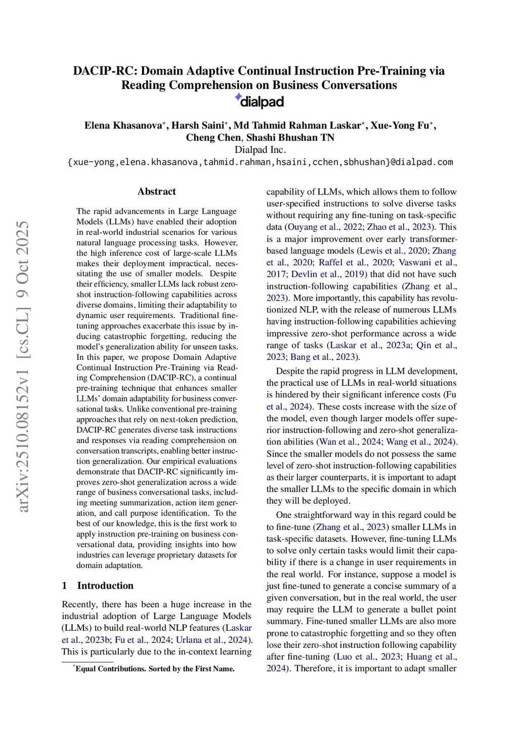 DACIP-RC: Domain Adaptive Continual Instruction Pre-Training via Reading Comprehension on Business Conversations