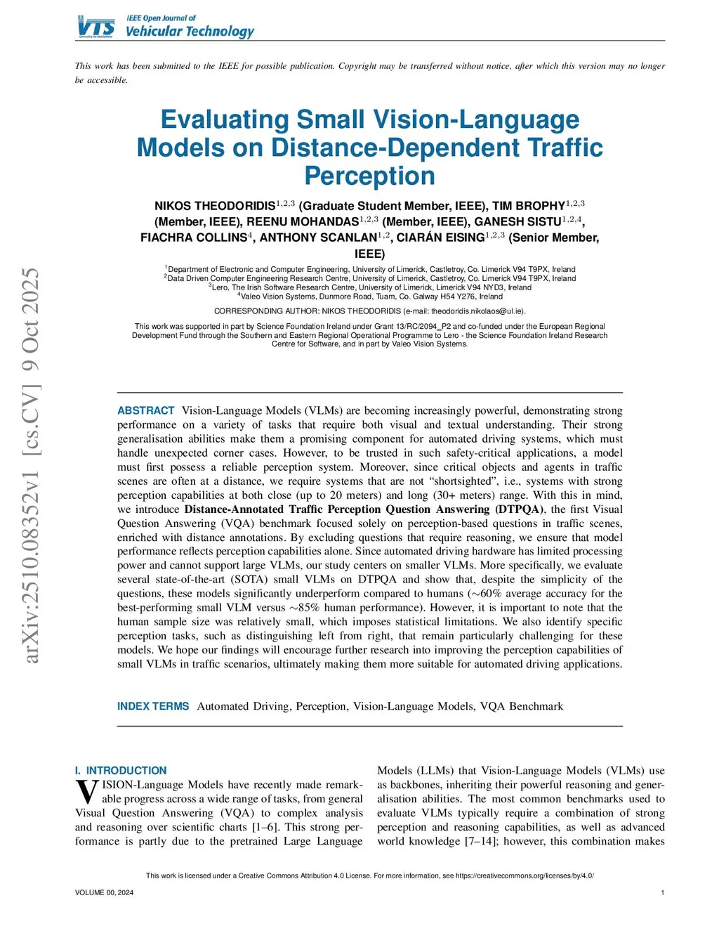 Vision-Language Models (VLMs) are becoming increasingly powerful, demonstrating strong performance on a variety of tasks that require both visual and textual understanding. Their strong generalisation abilities make them a promising component for automated driving systems, which must handle unexpected corner cases. However, to be trusted in such safety-critical applications, a model must first possess a reliable perception system. Moreover, since critical objects and agents in traffic scenes are often at a distance, we require systems that are not "shortsighted", i.e., systems with strong perception capabilities at both close (up to 20 meters) and long (30+ meters) range. With this in mind, we introduce Distance-Annotated Traffic Perception Question Answering (DTPQA), the first Visual Question Answering (VQA) benchmark focused solely on perception-based questions in traffic scenes, enriched with distance annotations. By excluding questions that require reasoning, we ensure that model performance reflects perception capabilities alone. Since automated driving hardware has limited processing power and cannot support large VLMs, our study centers on smaller VLMs. More specifically, we evaluate several state-of-the-art (SOTA) small VLMs on DTPQA and show that, despite the simplicity of the questions, these models significantly underperform compared to humans (~60% average accuracy for the best-performing small VLM versus ~85% human performance). However, it is important to note that the human sample size was relatively small, which imposes statistical limitations. We also identify specific perception tasks, such as distinguishing left from right, that remain particularly challenging for these models.