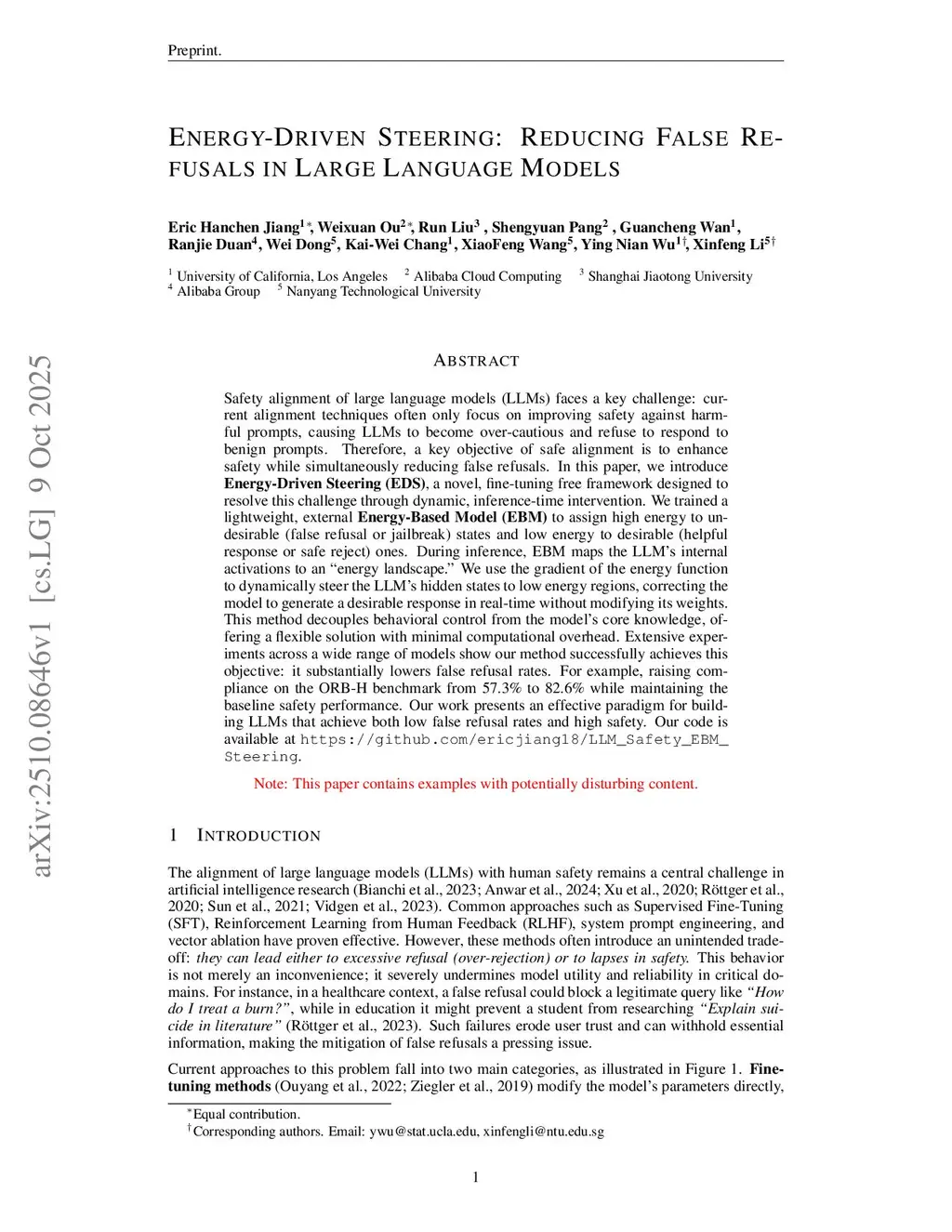 Safety alignment of large language models currently faces a central challenge: existing alignment techniques often prioritize mitigating responses to harmful prompts at the expense of overcautious behavior, leading models to incorrectly refuse benign requests. A key goal of safe alignment is therefore to improve safety while simultaneously minimizing false refusals. In this work, we introduce Energy Landscape Steering (ELS), a novel, fine-tuning free framework designed to resolve this challenge through dynamic, inference-time intervention. We train a lightweight external Energy-Based Model (EBM) to assign high energy to undesirable states (false refusal or jailbreak) and low energy to desirable states (helpful response or safe reject). During inference, the EBM maps the LLM's internal activations to an energy landscape, and we use the gradient of the energy function to steer the hidden states toward low-energy regions in real time. This dynamically guides the model toward desirable behavior without modifying its parameters. By decoupling behavioral control from the model's core knowledge, ELS provides a flexible and computationally efficient solution. Extensive experiments across diverse models demonstrate its effectiveness, raising compliance on the ORB-H benchmark from 57.3 percent to 82.6 percent while maintaining baseline safety performance. Our work establishes a promising paradigm for building LLMs that simultaneously achieve high safety and low false refusal rates.