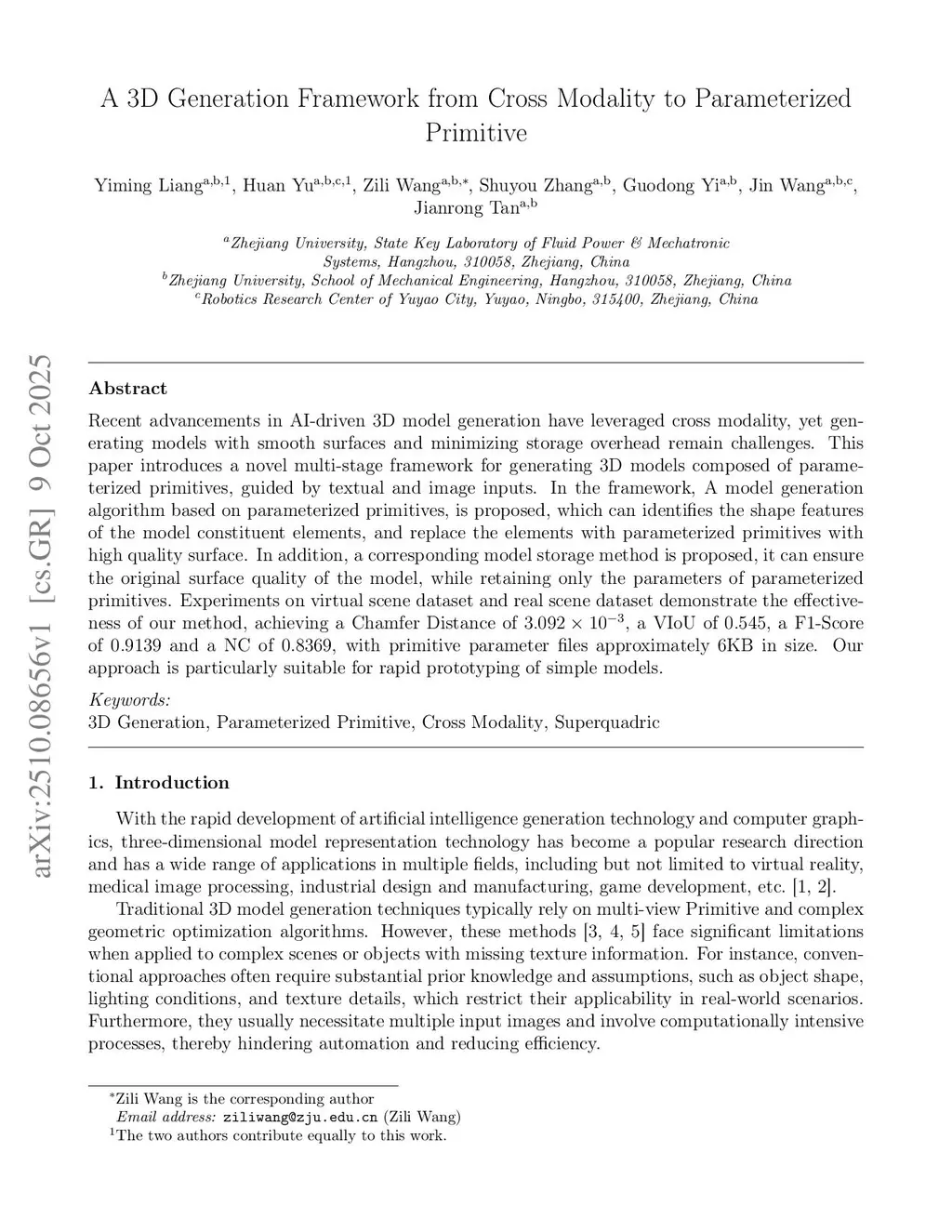 A 3D Generation Framework from Cross Modality to Parameterized Primitive