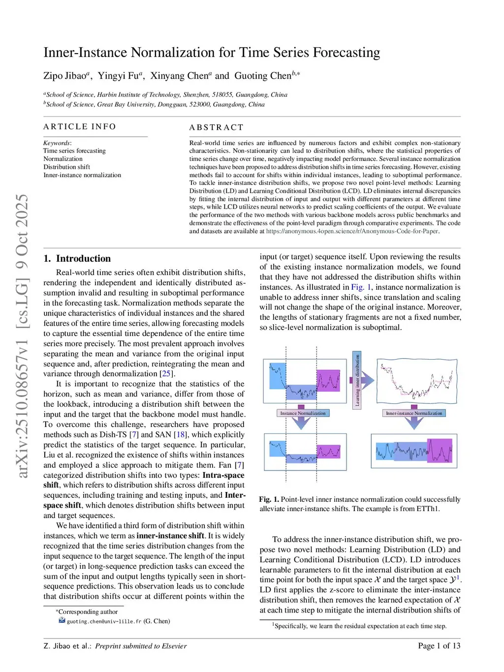 Inner-Instance Normalization for Time Series Forecasting