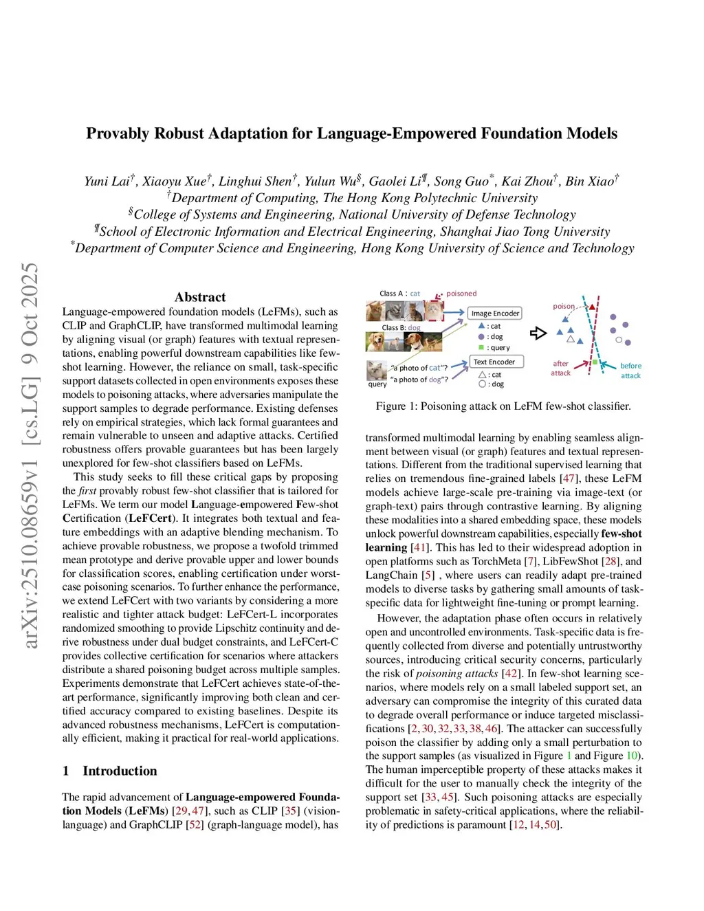 Provably Robust Adaptation for Language-Empowered Foundation Models