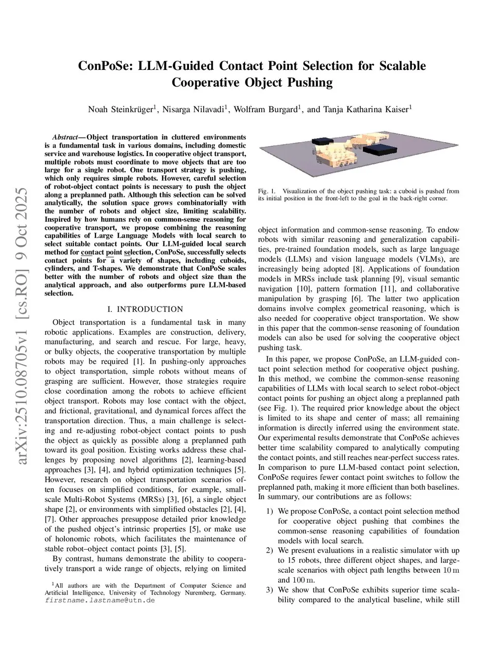 ConPoSe: LLM-Guided Contact Point Selection for Scalable Cooperative Object Pushing