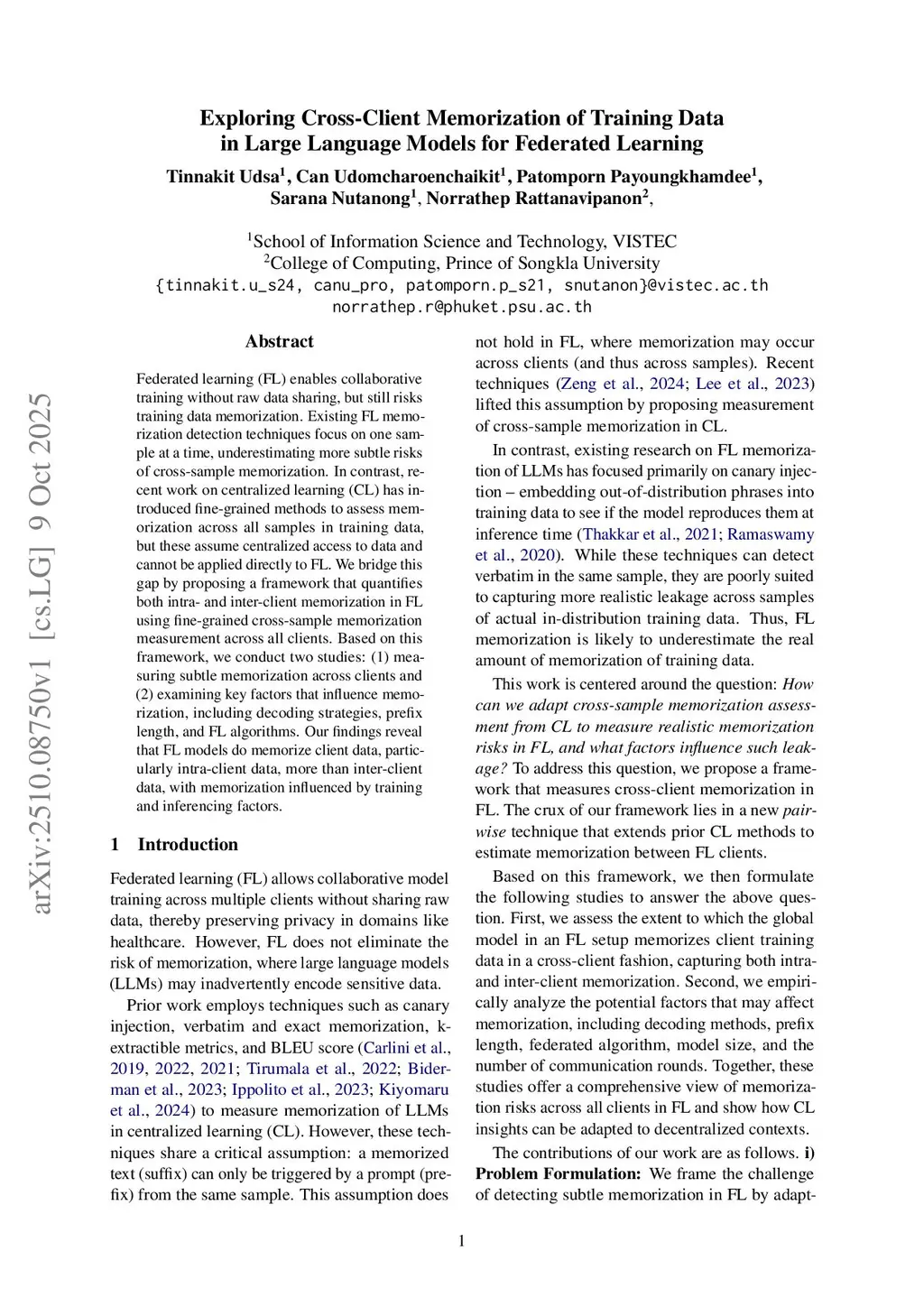 Exploring Cross-Client Memorization of Training Data in Large Language Models for Federated Learning