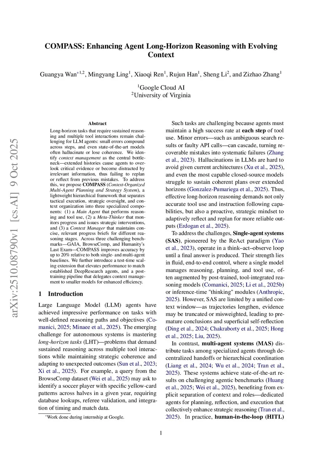 COMPASS: Enhancing Agent Long-Horizon Reasoning with Evolving Context