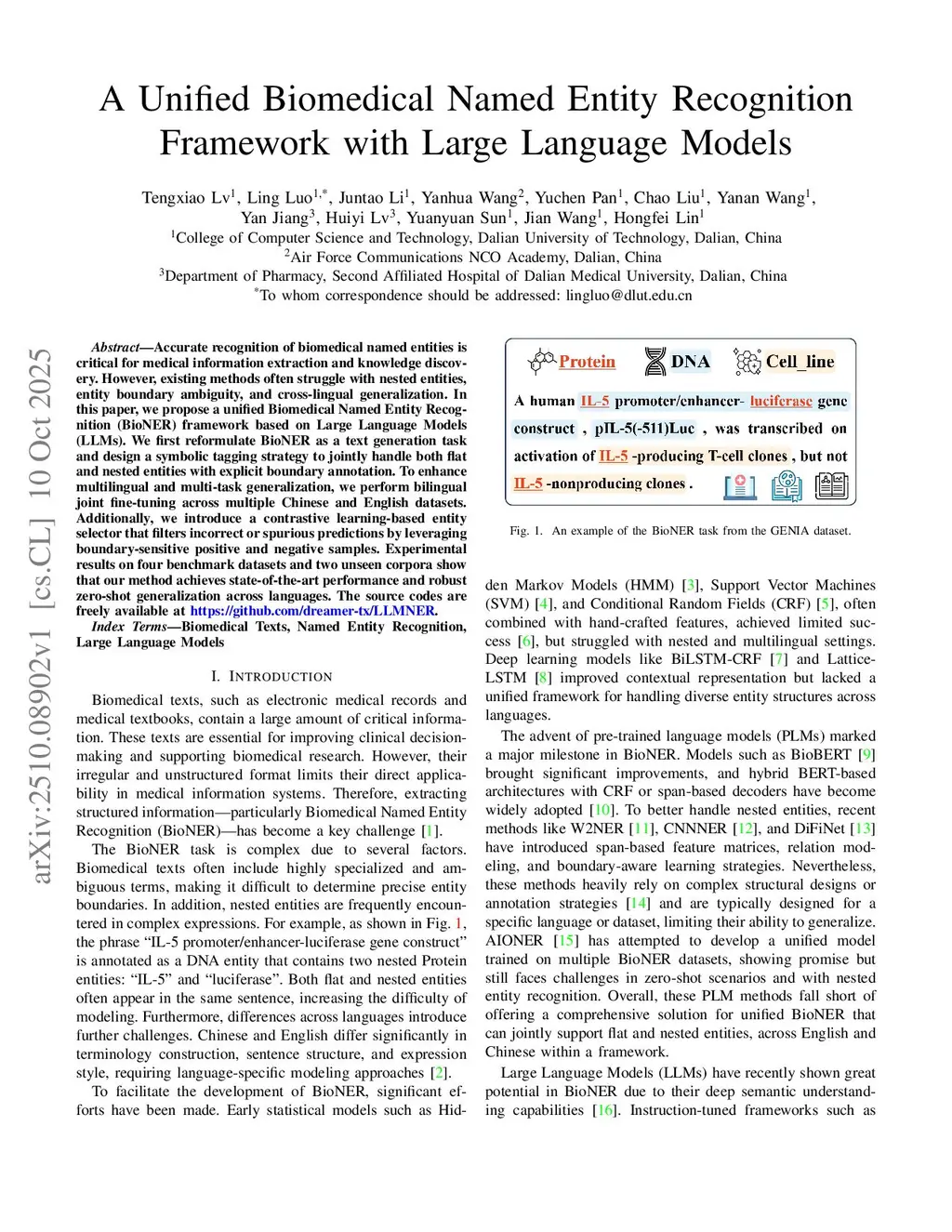Accurate recognition of biomedical named entities is critical for medical information extraction and knowledge discovery. However, existing methods often struggle with nested entities, entity boundary ambiguity, and cross-lingual generalization. In this paper, we propose a unified Biomedical Named Entity Recognition (BioNER) framework based on Large Language Models (LLMs). We first reformulate BioNER as a text generation task and design a symbolic tagging strategy to jointly handle both flat and nested entities with explicit boundary annotation. To enhance multilingual and multi-task generalization, we perform bilingual joint fine-tuning across multiple Chinese and English datasets. Additionally, we introduce a contrastive learning-based entity selector that filters incorrect or spurious predictions by leveraging boundary-sensitive positive and negative samples. Experimental results on four benchmark datasets and two unseen corpora show that our method achieves state-of-the-art performance and robust zero-shot generalization across languages. The source codes are freely available atthis https URL.