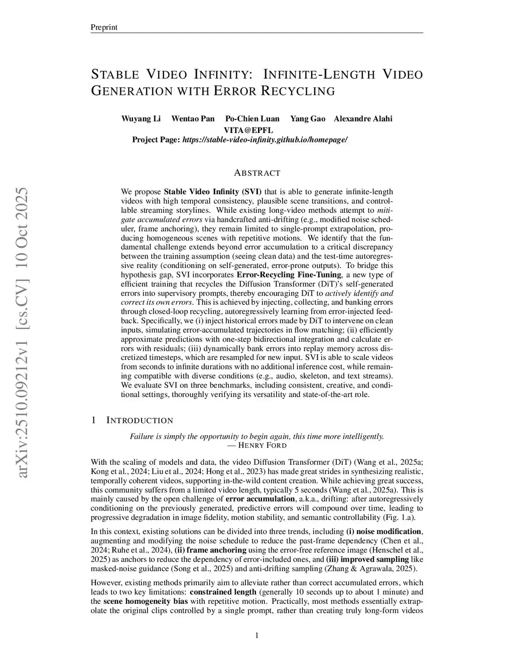 Stable Video Infinity: Infinite-Length Video Generation with Error Recycling