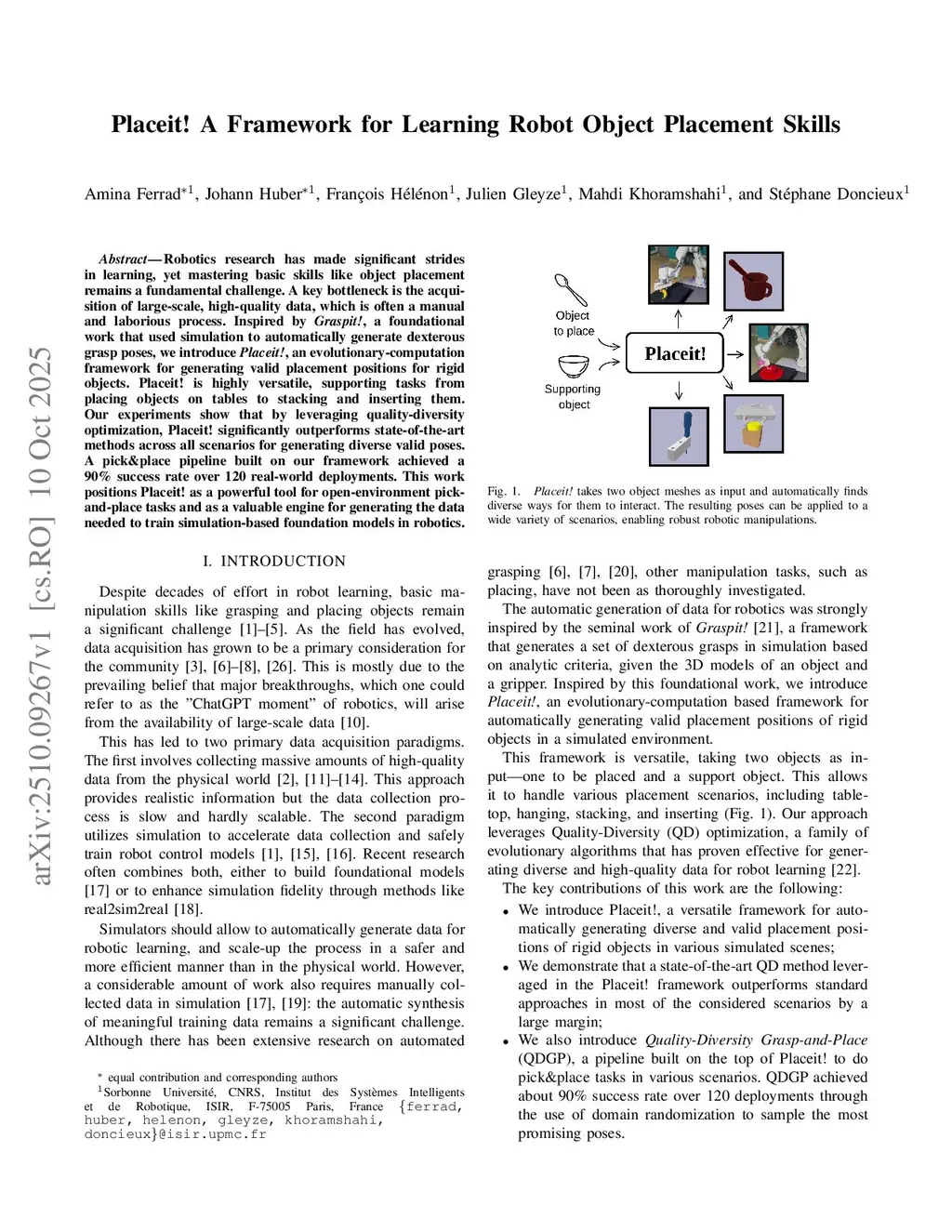 Placeit! A Framework for Learning Robot Object Placement Skills