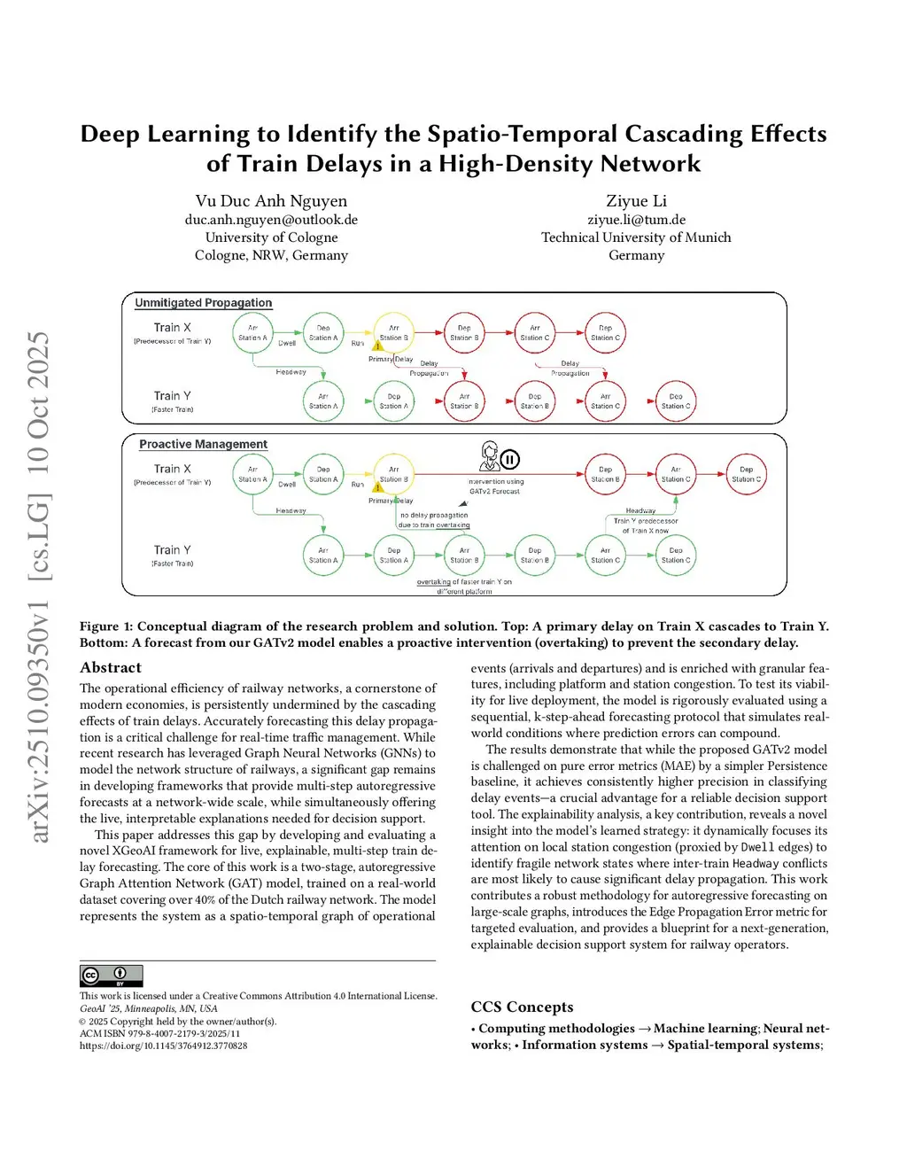 Deep Learning to Identify the Spatio-Temporal Cascading Effects of Train Delays in a High-Density Network