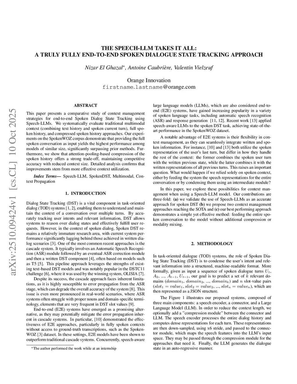 The Speech-LLM Takes It All: A Truly Fully End-to-End Spoken Dialogue State Tracking Approach