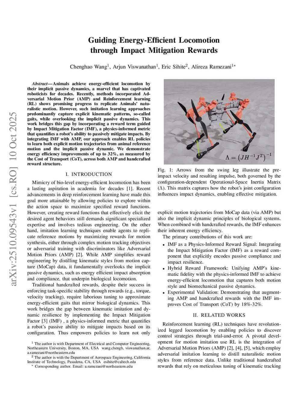 Guiding Energy-Efficient Locomotion through Impact Mitigation Rewards