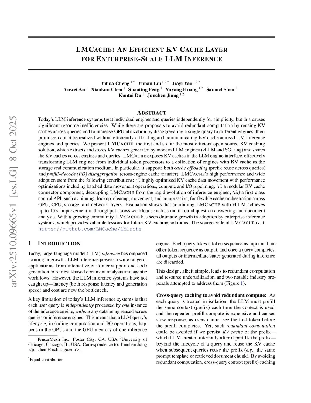 LMCache: An Efficient KV Cache Layer for Enterprise-Scale LLM Inference