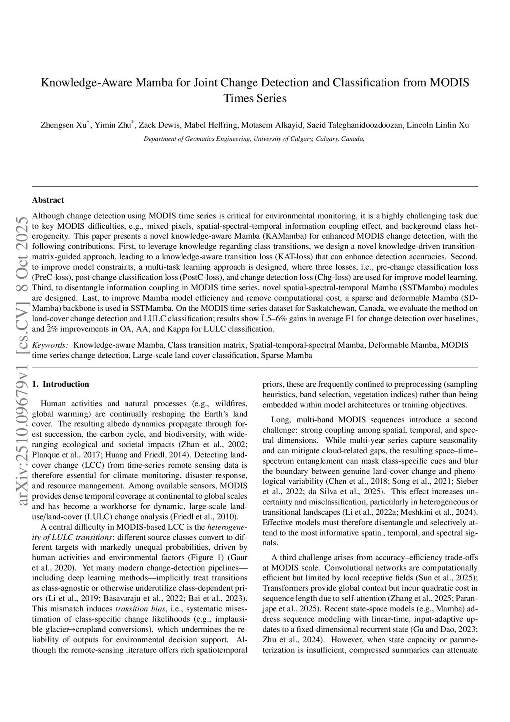 Knowledge-Aware Mamba for Joint Change Detection and Classification from MODIS Times Series