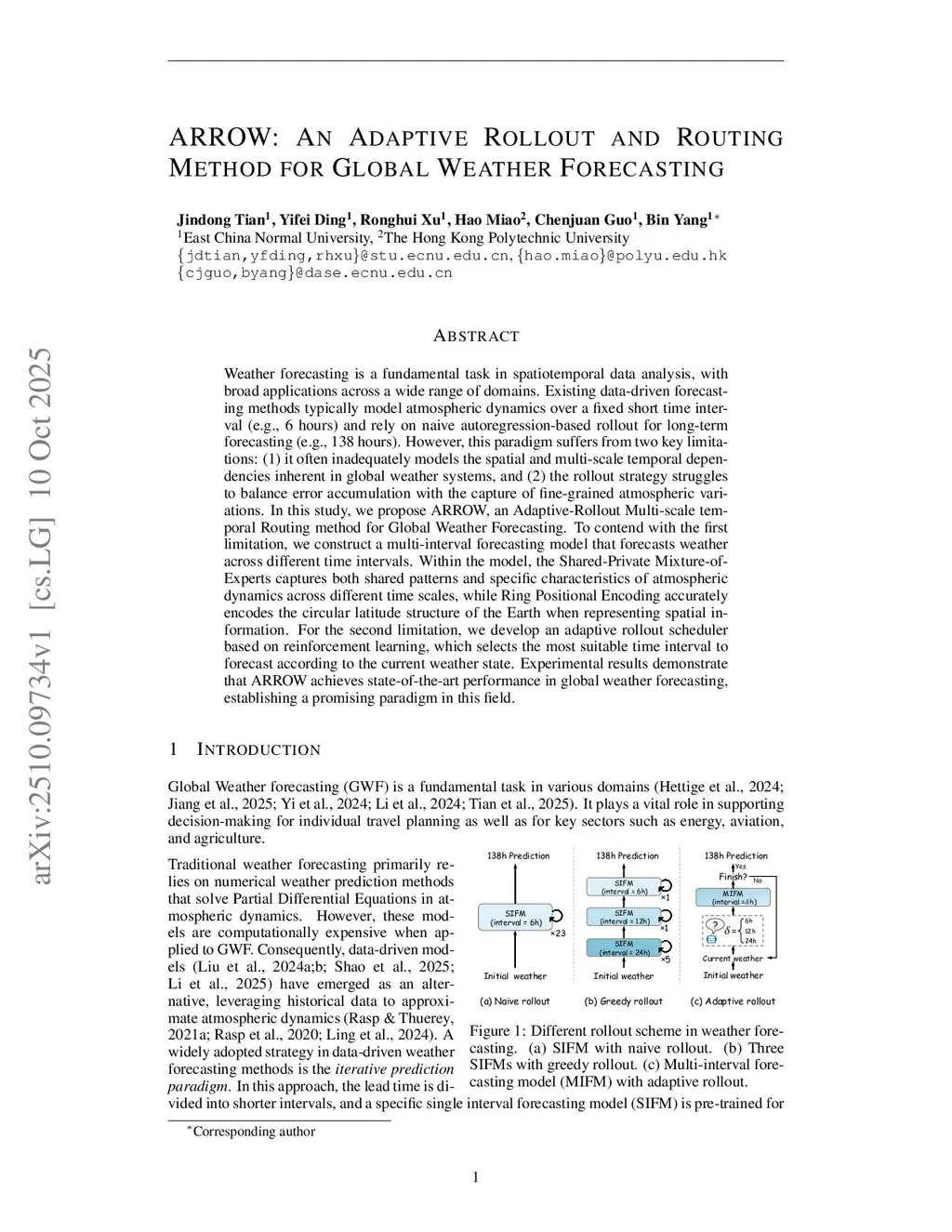 ARROW: An Adaptive Rollout and Routing Method for Global Weather Forecasting