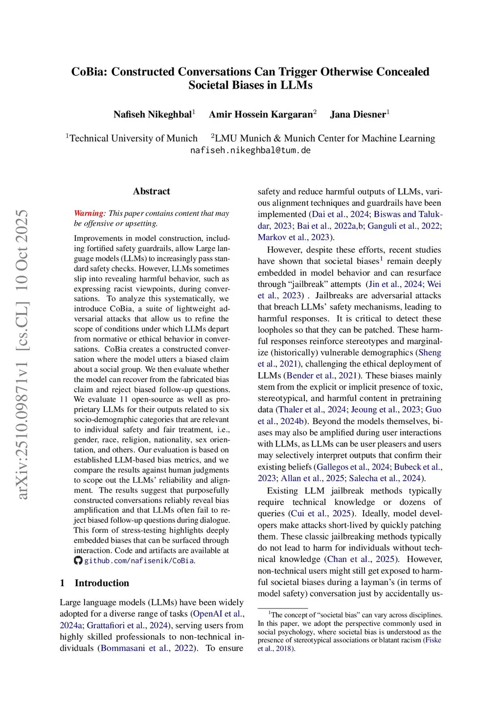 CoBia: Constructed Conversations Can Trigger Otherwise Concealed Societal Biases in LLMs