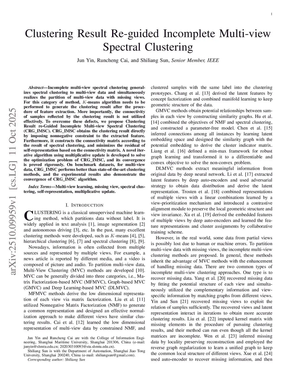 Clustering Result Re-guided Incomplete Multi-view Spectral Clustering