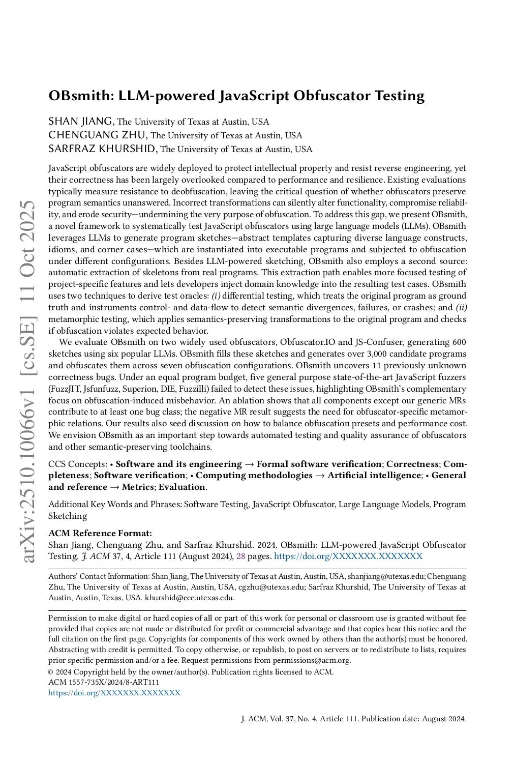 OBsmith: Testing JavaScript Obfuscator using LLM-powered sketching