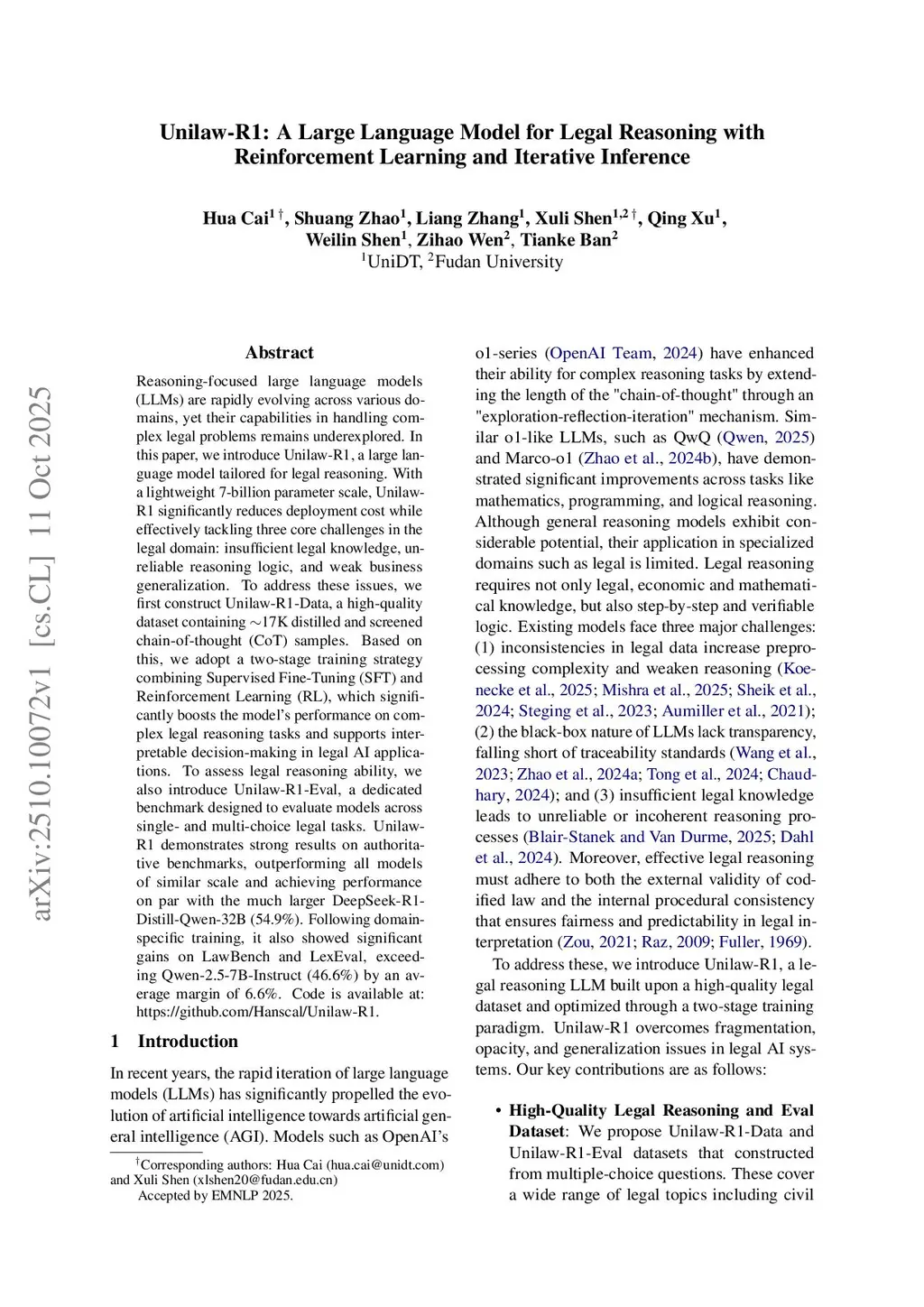 Unilaw-R1: A Large Language Model for Legal Reasoning with Reinforcement Learning and Iterative Inference
