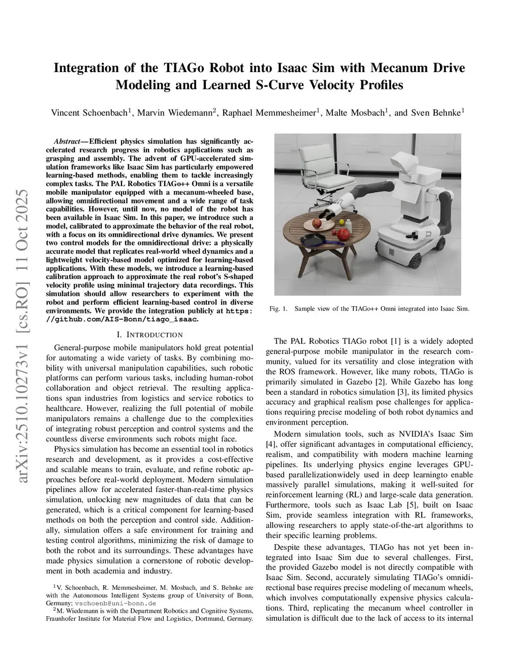 Integration of the TIAGo Robot into Isaac Sim with Mecanum Drive Modeling and Learned S-Curve Velocity Profiles