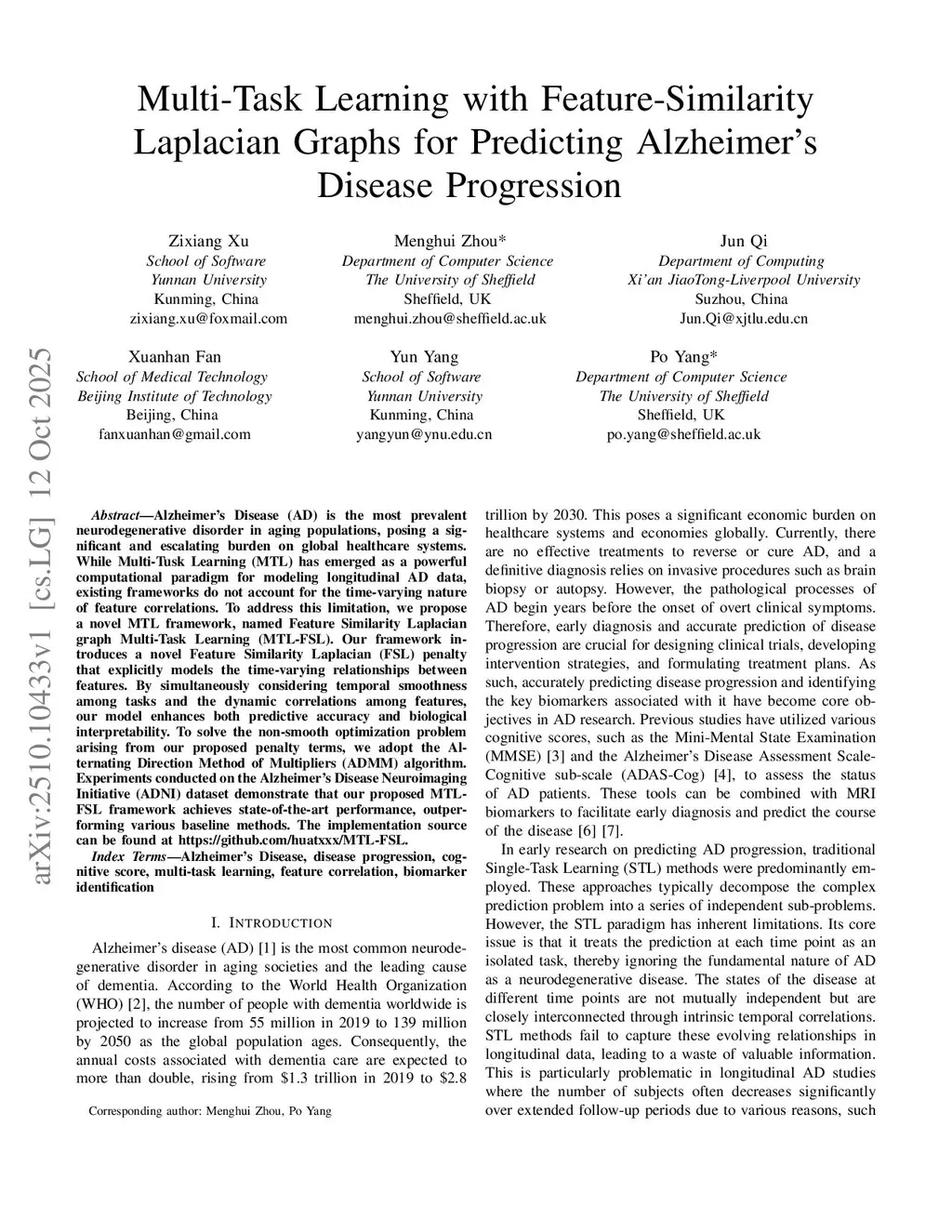 Multi-Task Learning with Feature-Similarity Laplacian Graphs for Predicting Alzheimer's Disease Progression