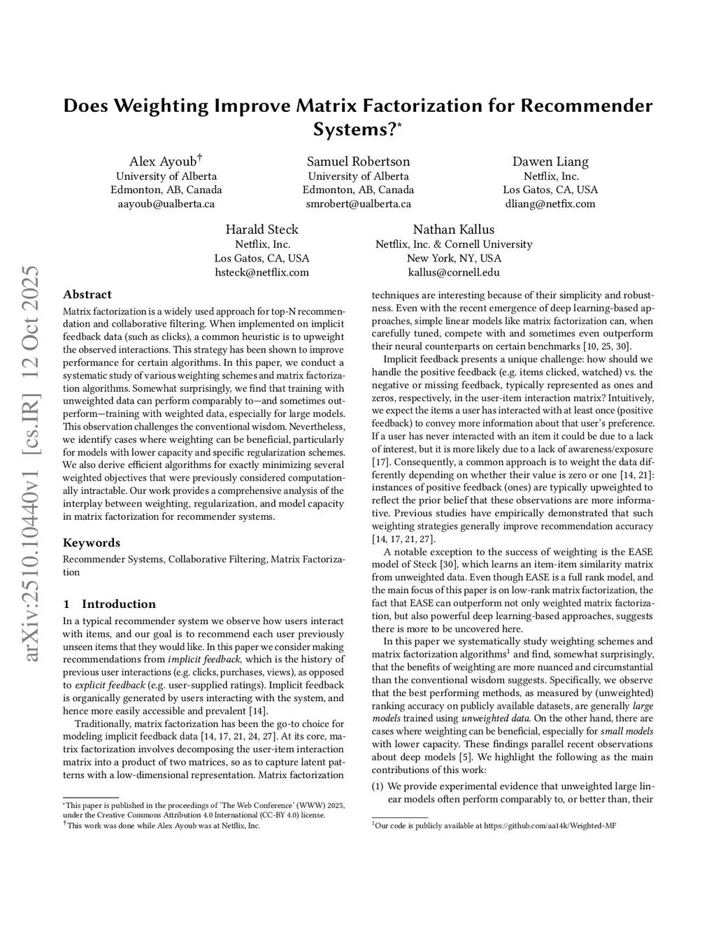 Matrix factorization is a widely used approach for top-N recommendation and collaborative filtering. When implemented on implicit feedback data (such as clicks), a common heuristic is to upweight the observed interactions. This strategy has been shown to improve performance for certain algorithms. In this paper, we conduct a systematic study of various weighting schemes and matrix factorization algorithms. Somewhat surprisingly, we find that training with unweighted data can perform comparably to, and sometimes outperform, training with weighted data, especially for large models. This observation challenges the conventional wisdom. Nevertheless, we identify cases where weighting can be beneficial, particularly for models with lower capacity and specific regularization schemes. We also derive efficient algorithms for exactly minimizing several weighted objectives that were previously considered computationally intractable. Our work provides a comprehensive analysis of the interplay between weighting, regularization, and model capacity in matrix factorization for recommender systems.