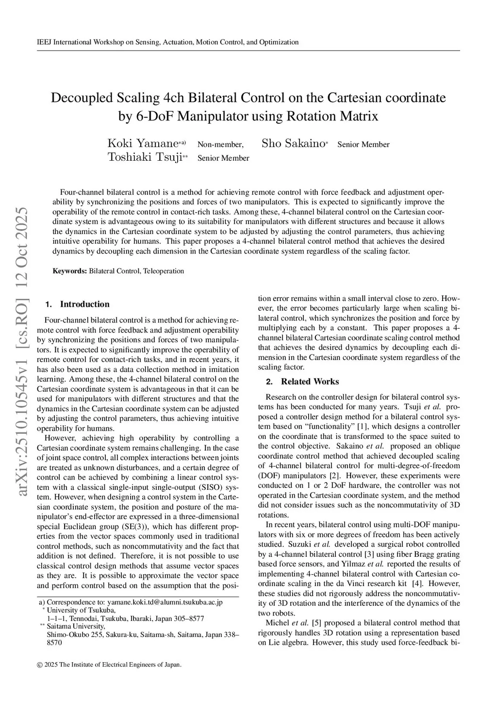 Decoupled Scaling 4ch Bilateral Control on the Cartesian coordinate by 6-DoF Manipulator using Rotation Matrix